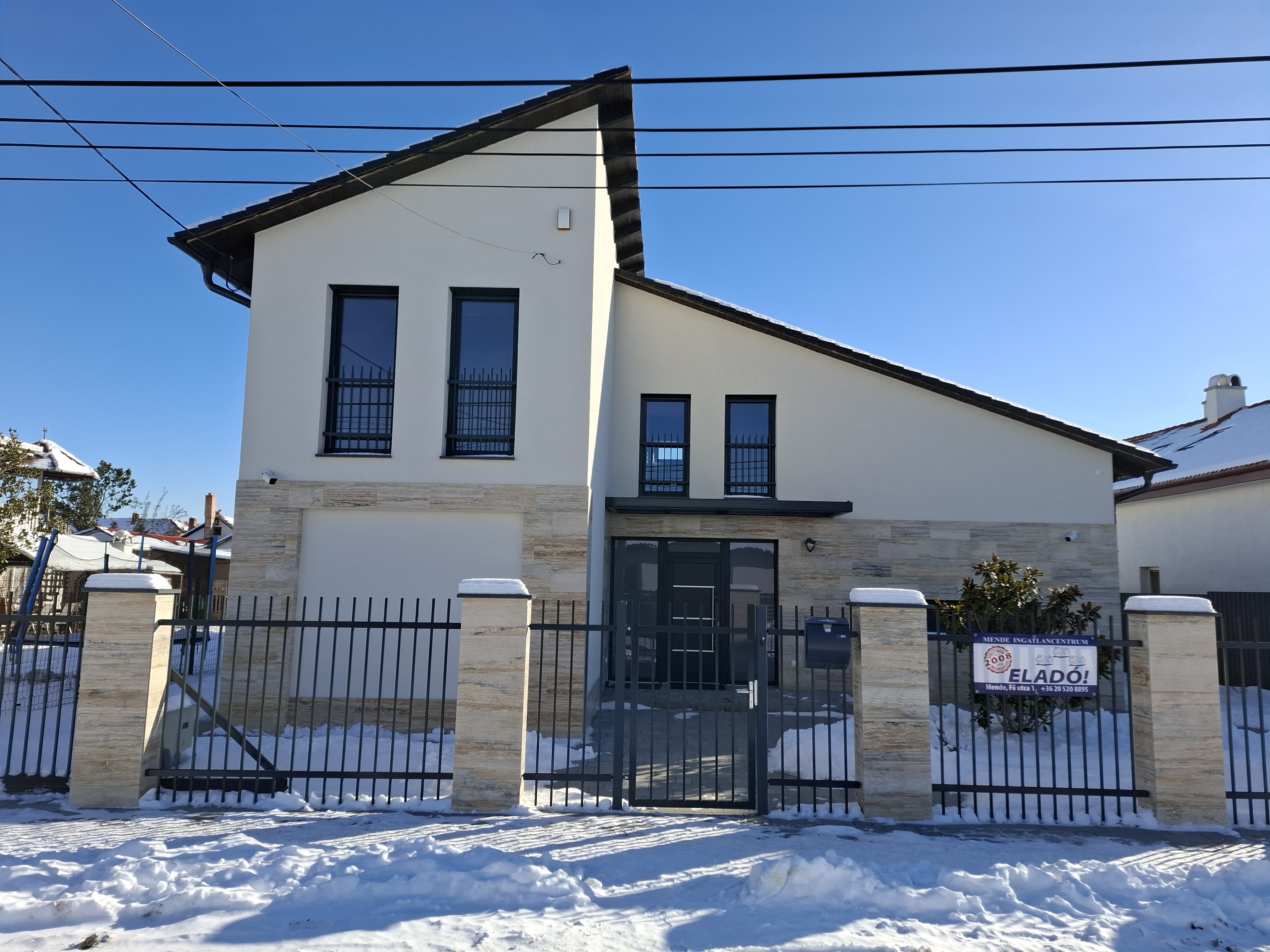 - Külső nyílászárók: Hőszigetelt 3 rétegű üvegezésű kívül-belül fehér műanyag nyílászárók (U= 1,1 W/m2K), A rejtett redőnytokok és a levezetők árát tartalmazza. A redőny Palást, szúnyogháló, esetleges motorizálás (ezek külön kérésre, Térítés ellenében rendelhető). Az ablakok bukó-nyíló vasalásúak. (Terven szereplő kivitel)