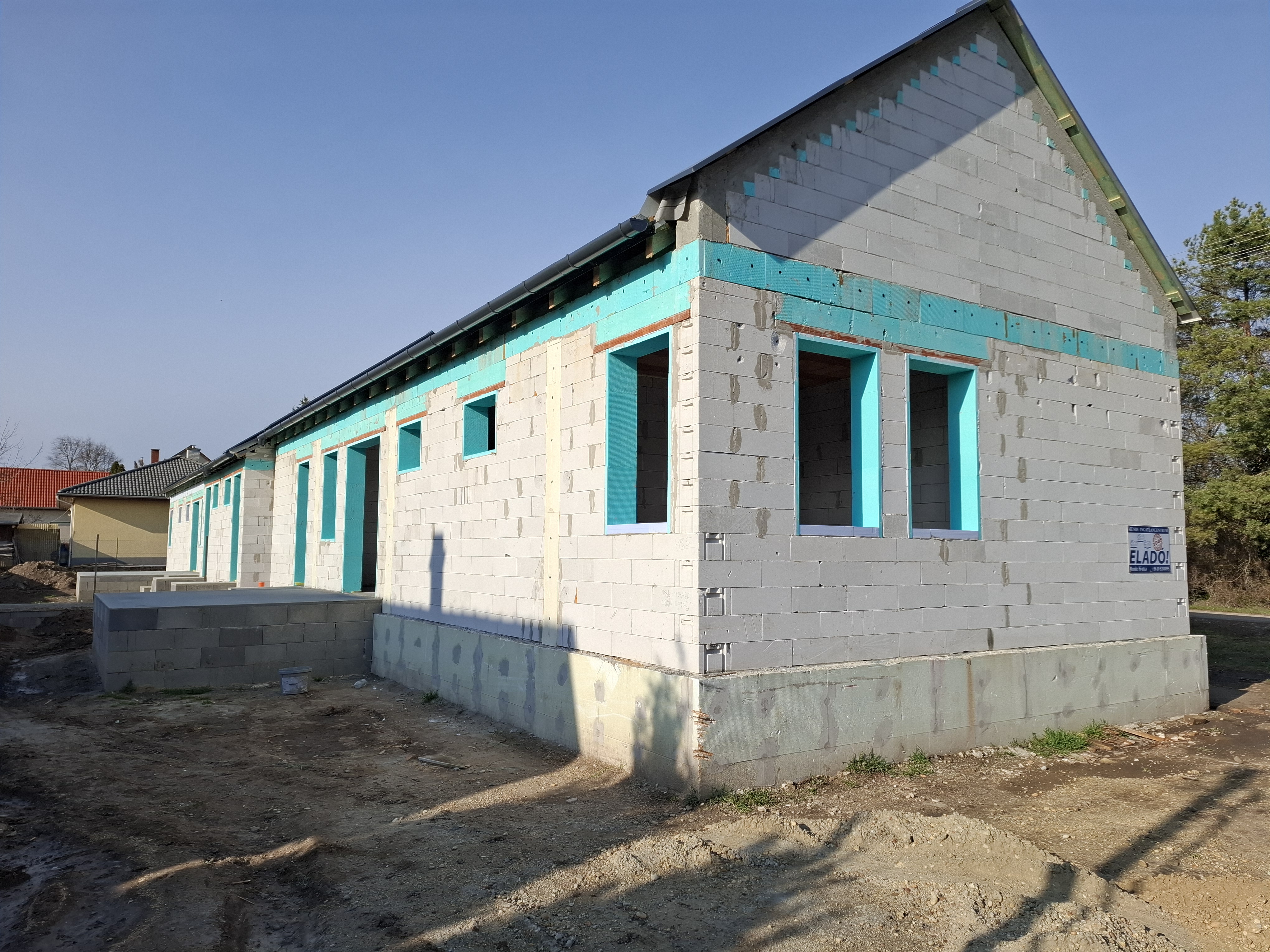 - Homlokzati szigetelés: 15cm EPS
