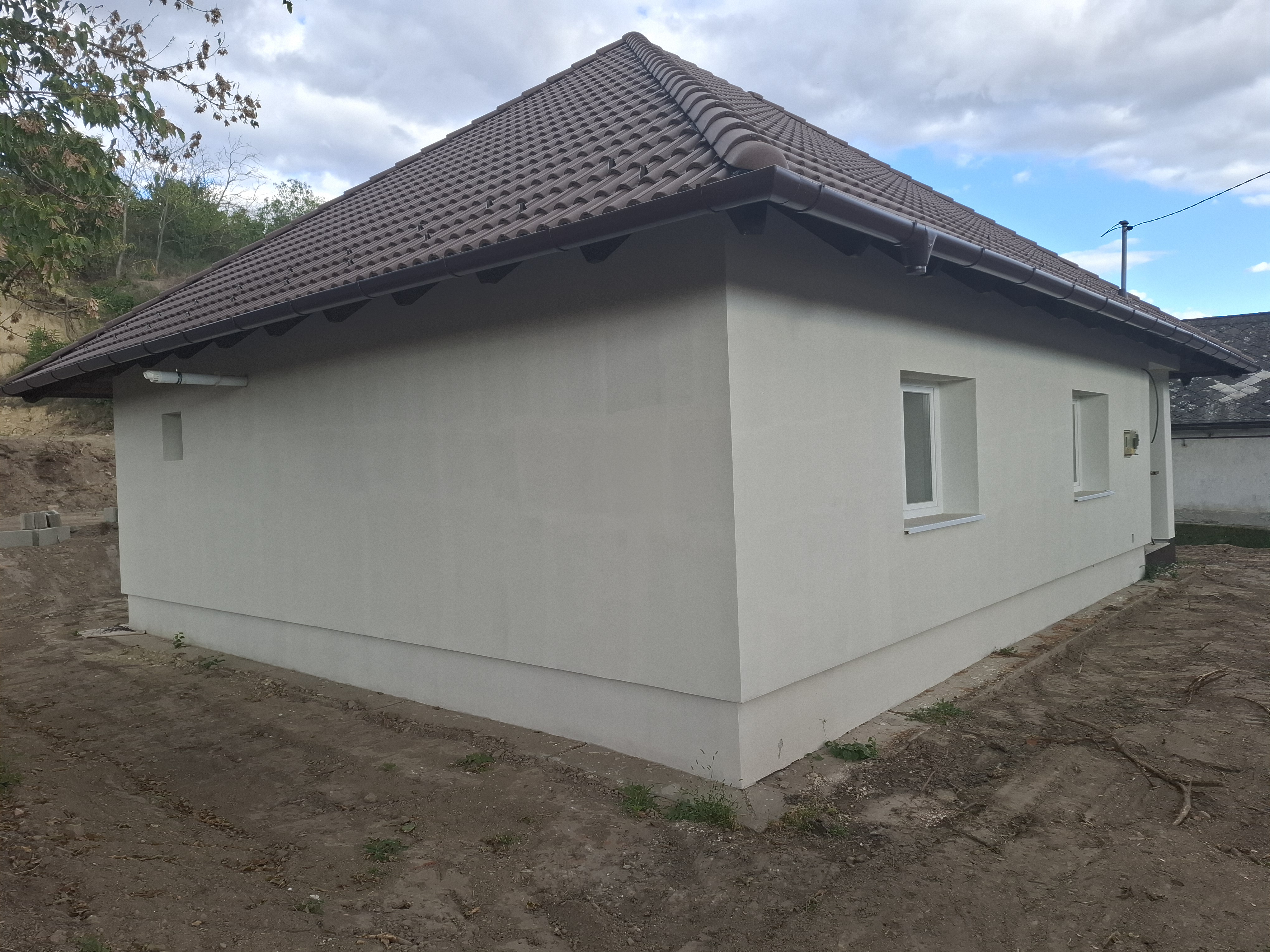- Lábazat: a csatlakozó terepszint fölött 30 cm-ig a vízszintes vízszigetelés fel lesz vezetve az épület homlokzatára. A szigetelés a mechanikai hatások ellen zárt cellás hőszigetelő anyaggal lesz védve.15 cm XPS