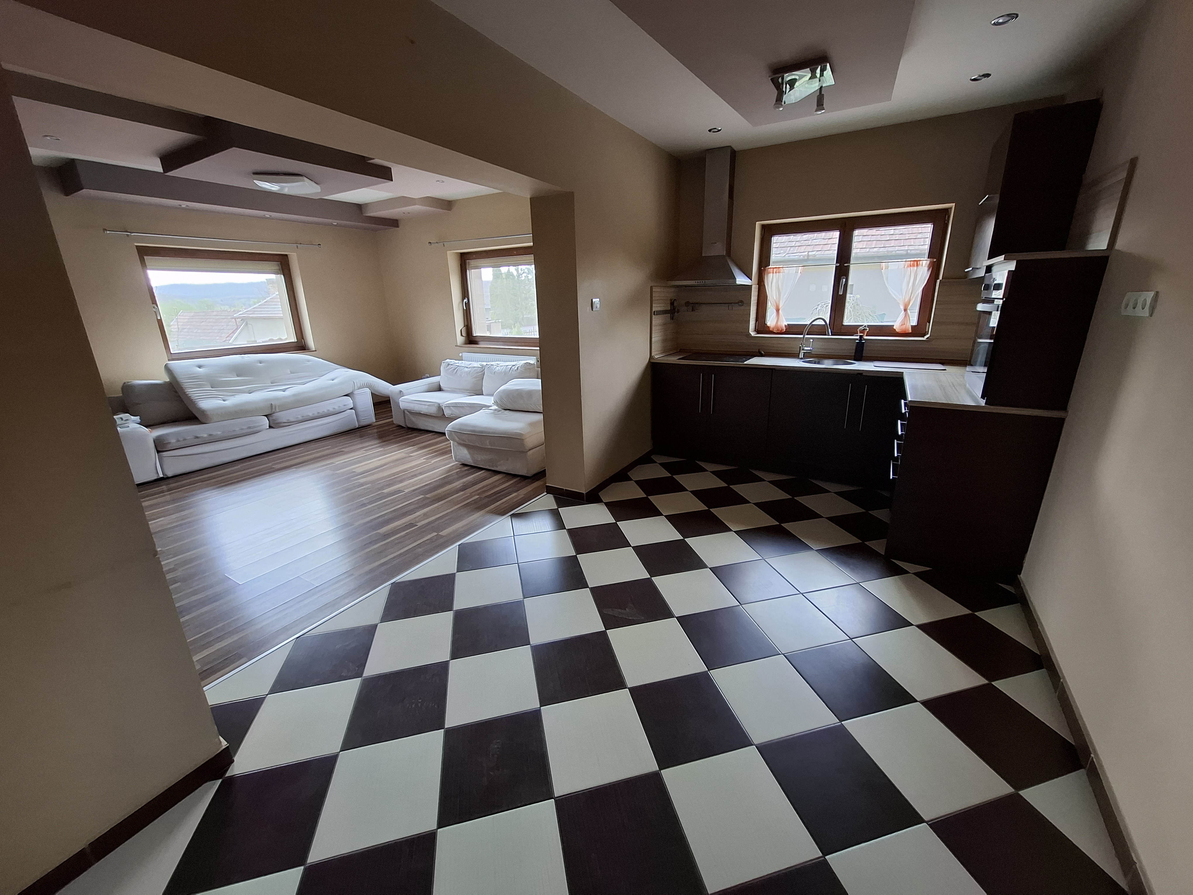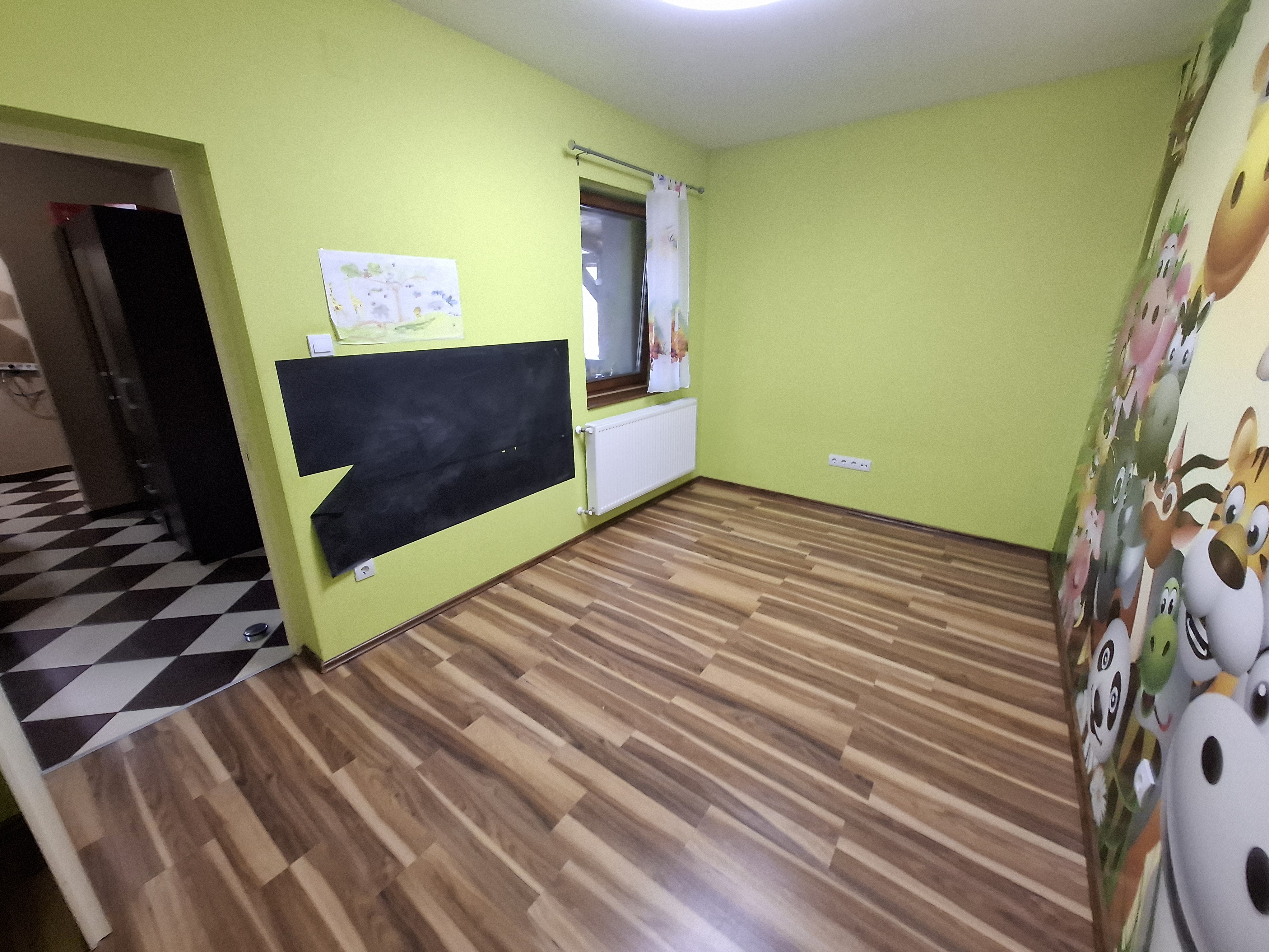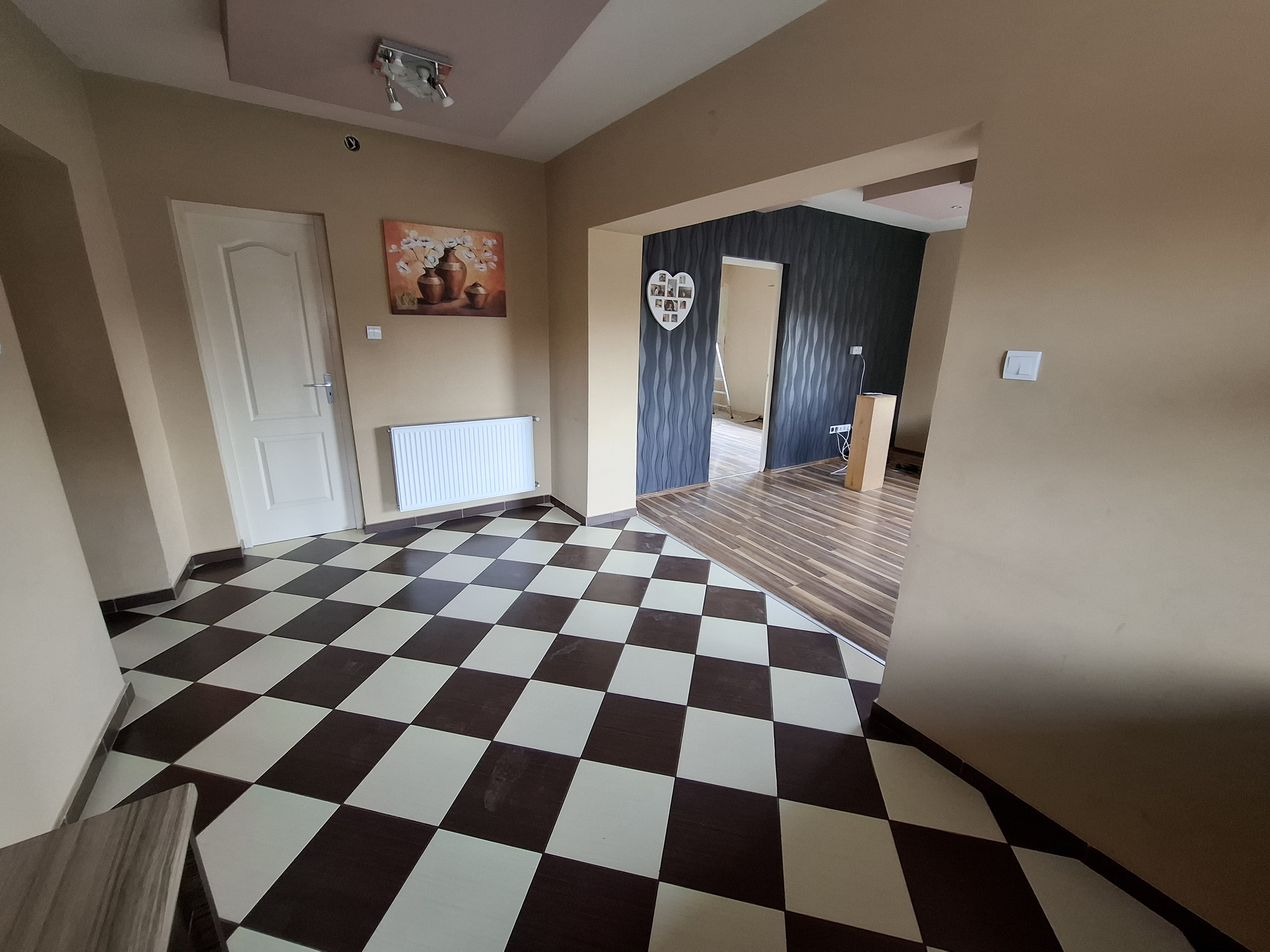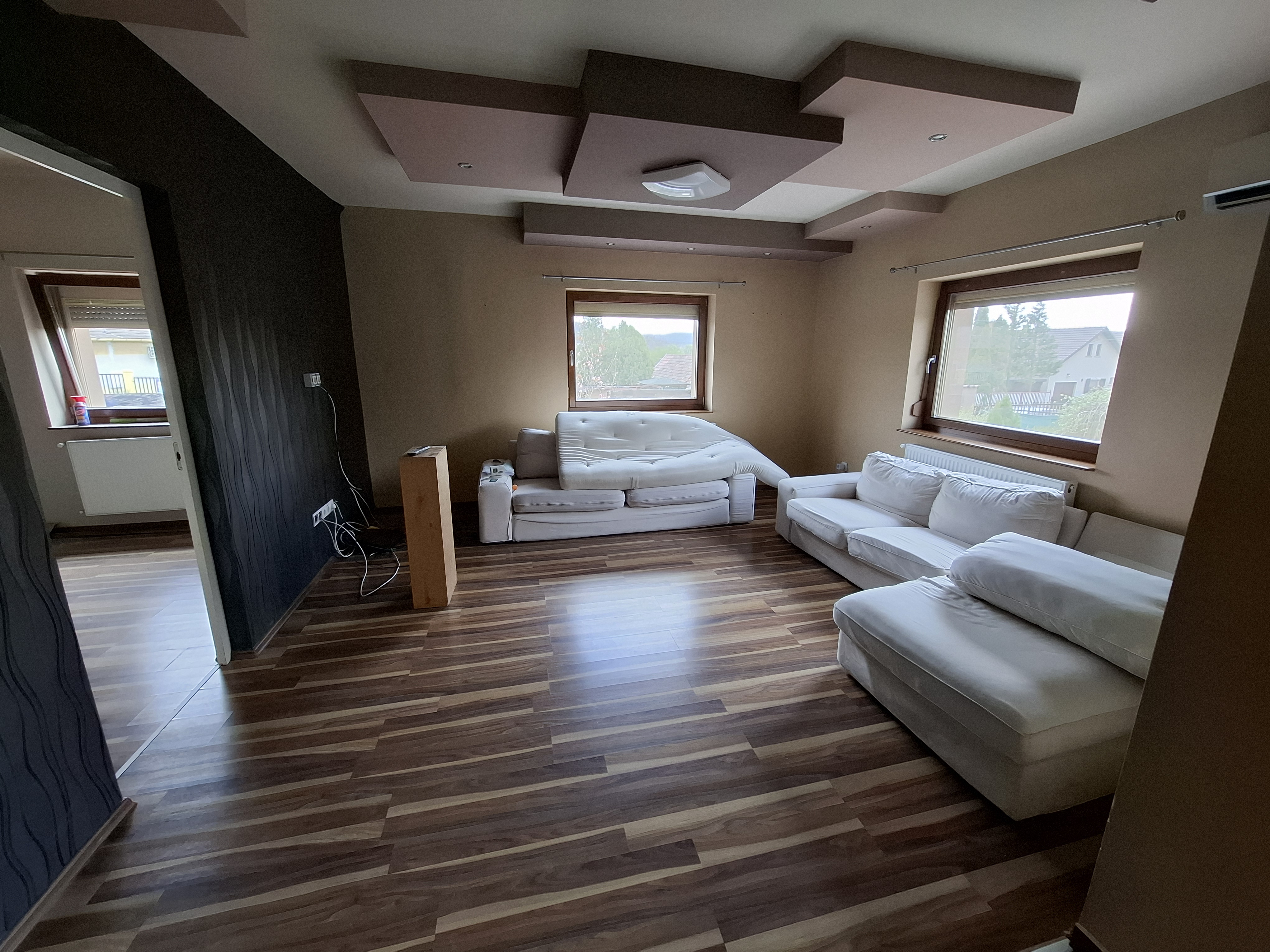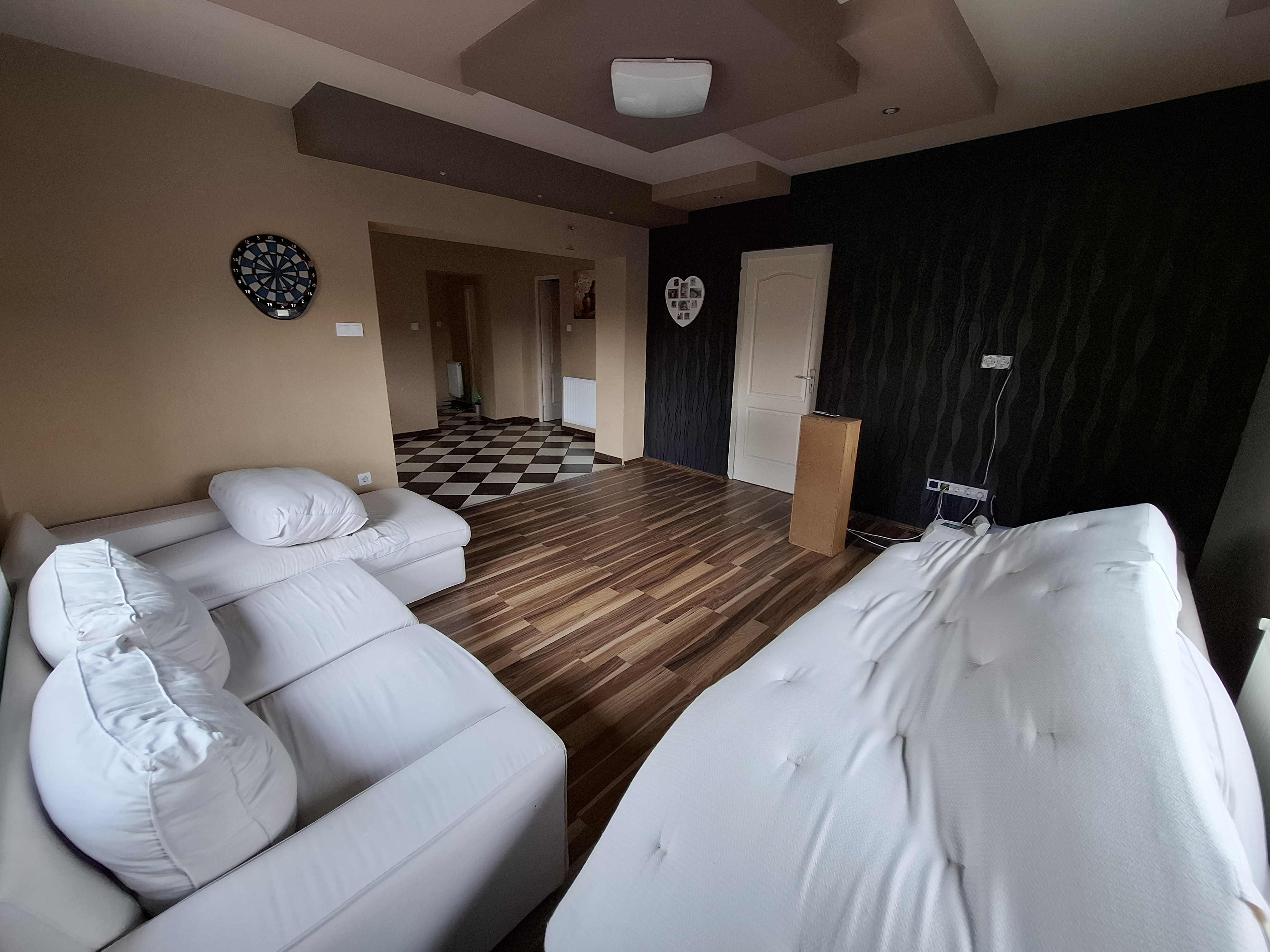 - Falak festése: falak és mennyezet glettelt, 2-szeri fehér festéssel