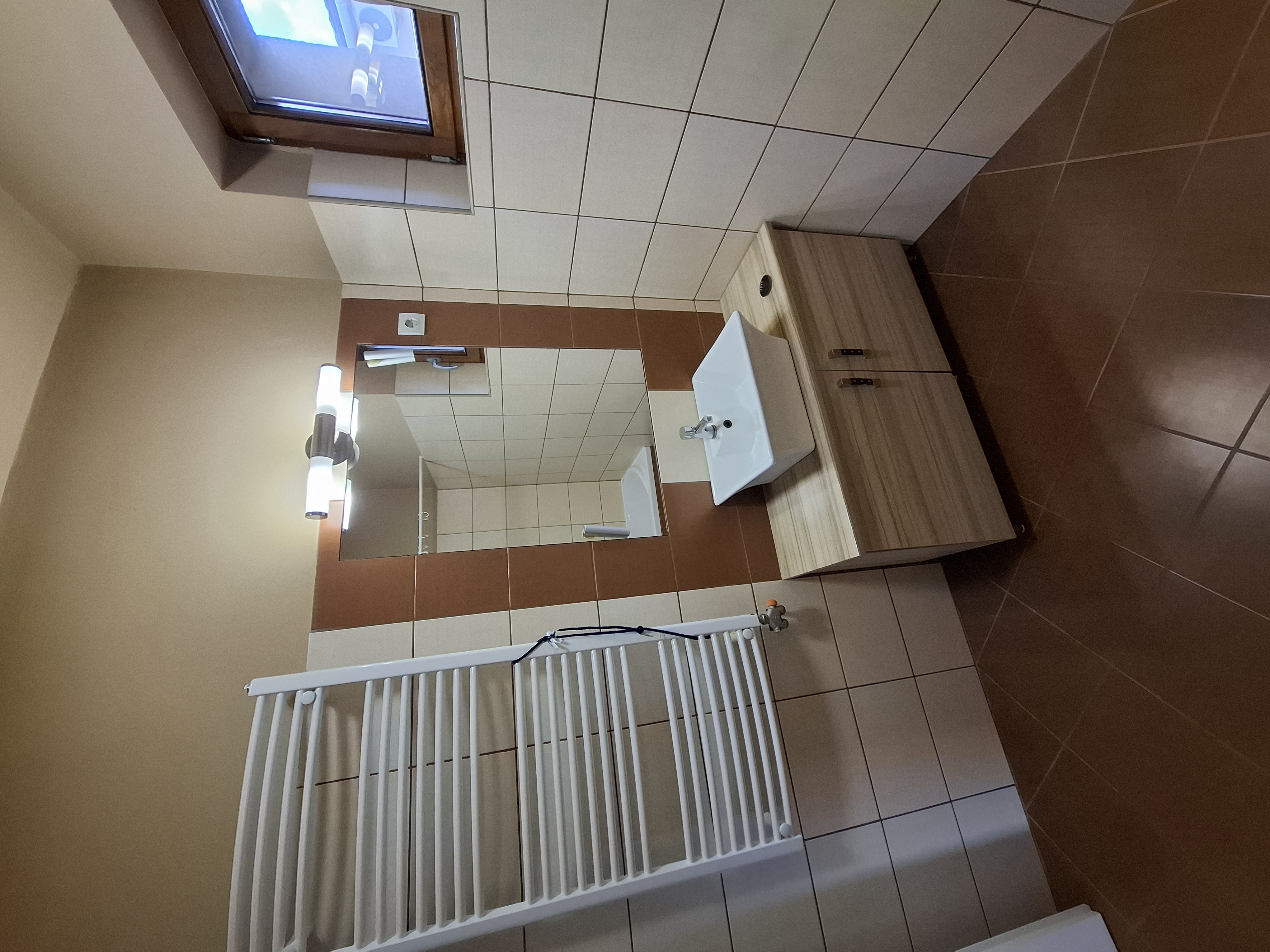 2.4. A fürdőszobában kád Cersanit Virgo 170 vagy épített zuhanyzó kerül, 55 cm-es Alföldi mosdót, valamint Viega beépített WC-t építünk be Cersanit Delfi szerelvénnyel. A csaptelepek Grohe Bau edge, vagy vele egyenértékű termékek.