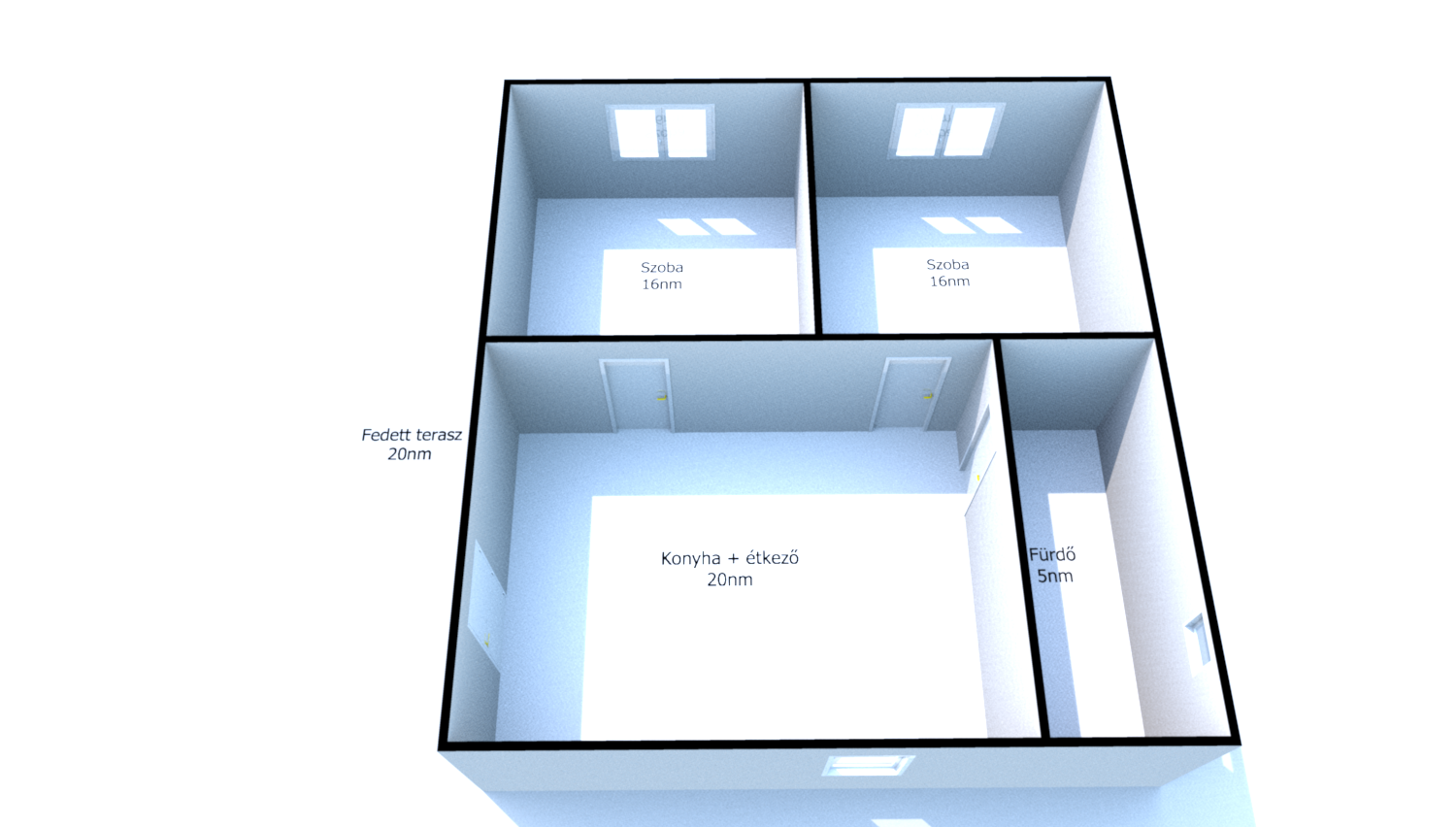 - Nyílászárók: egyedi tömör illetve teli üveges ajtó, laminált felülettel 45.000,-Ft darabárig választhatók