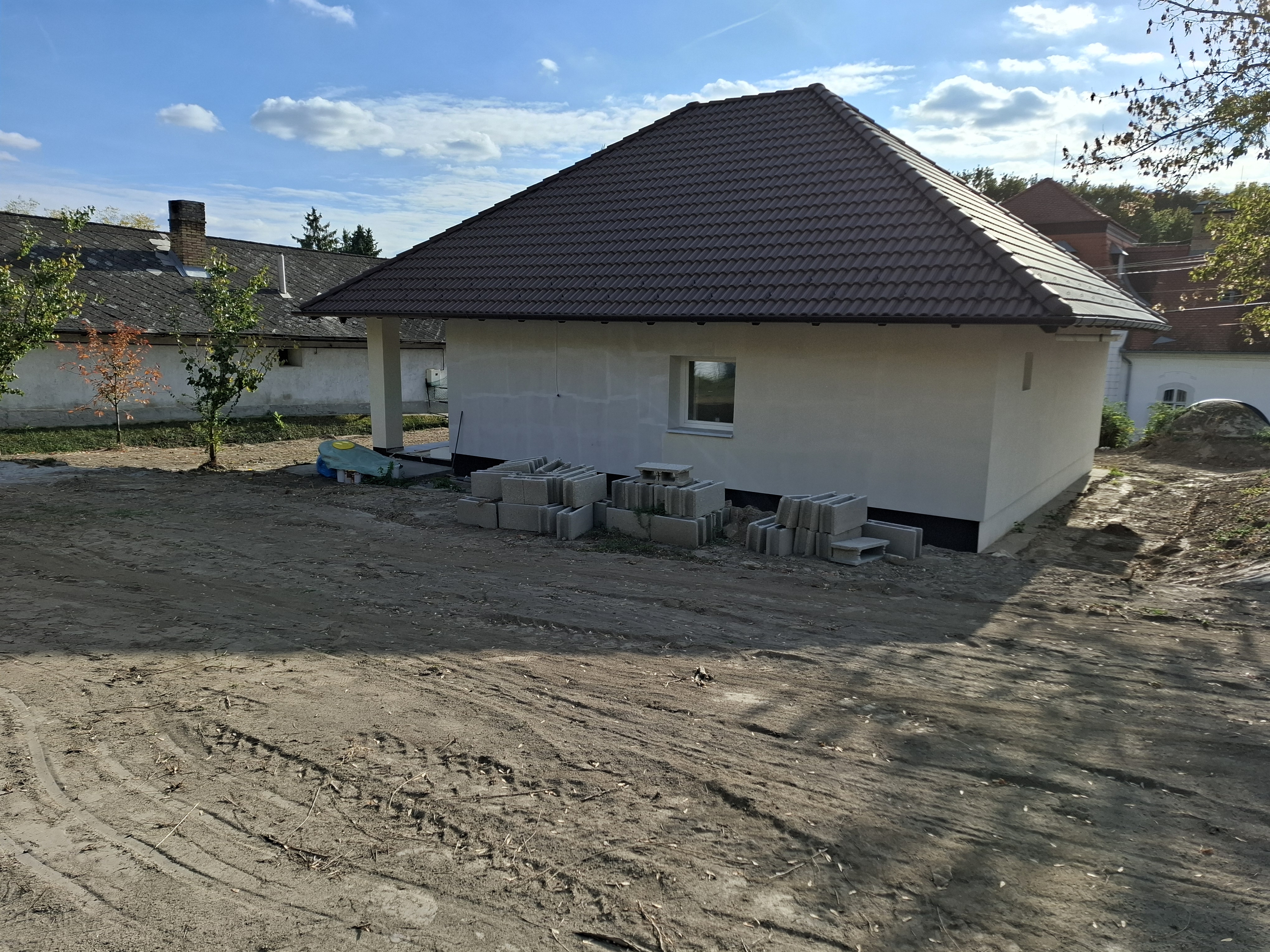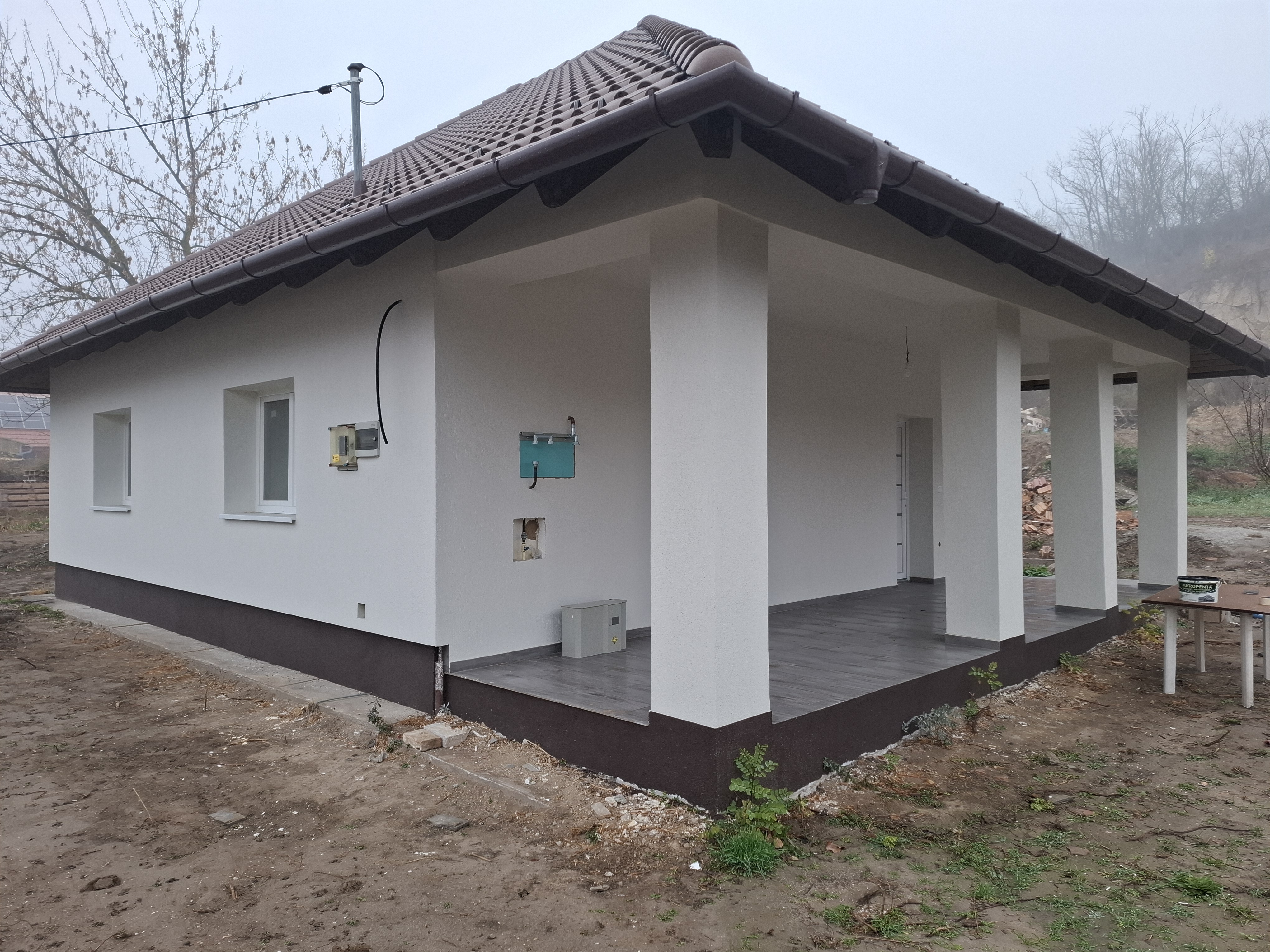 - Tetőszerkezet: hagyományos fa tetőszerkezet, 20 cm szigetelés az emeleti födémen terv szerint.