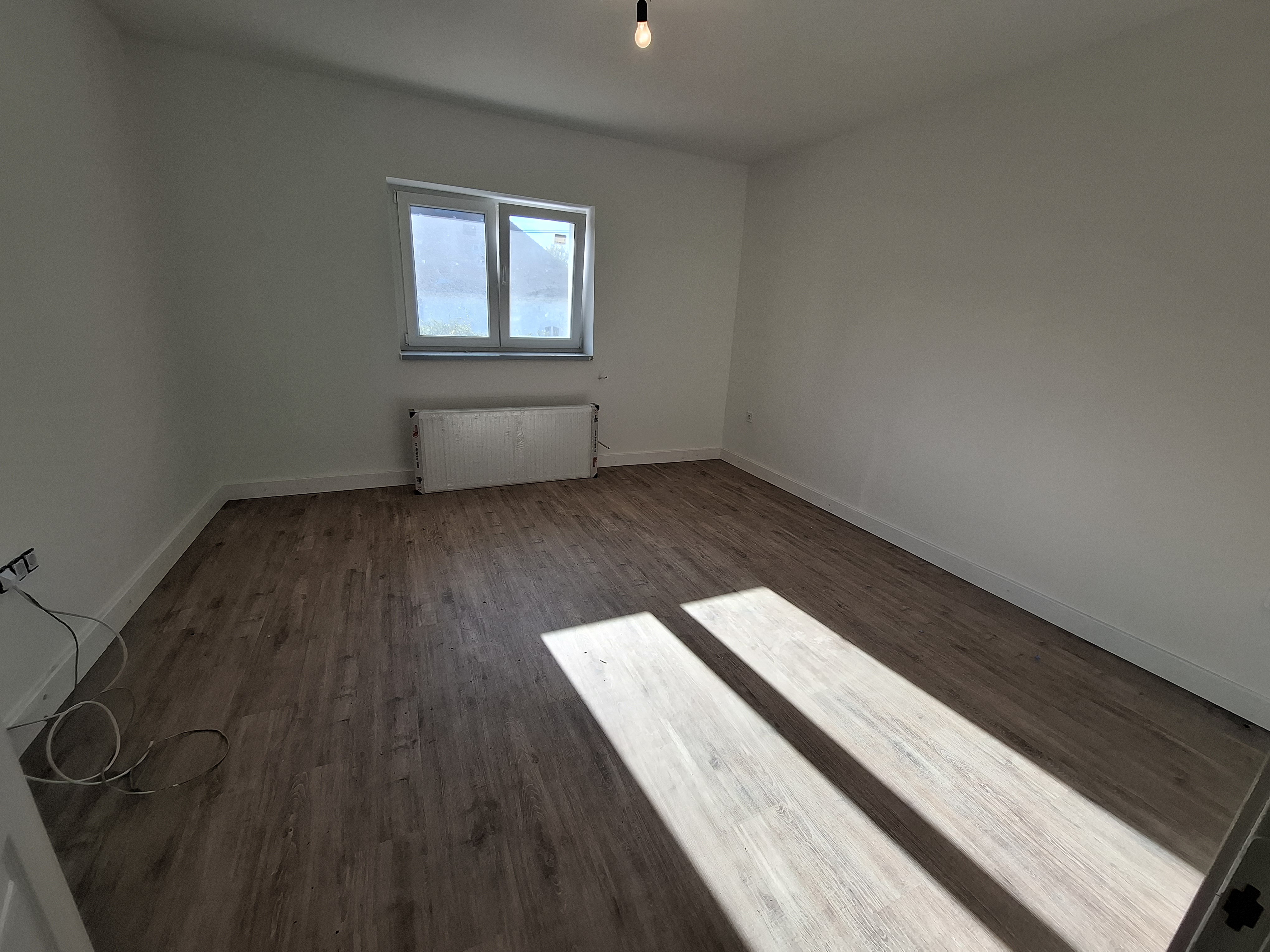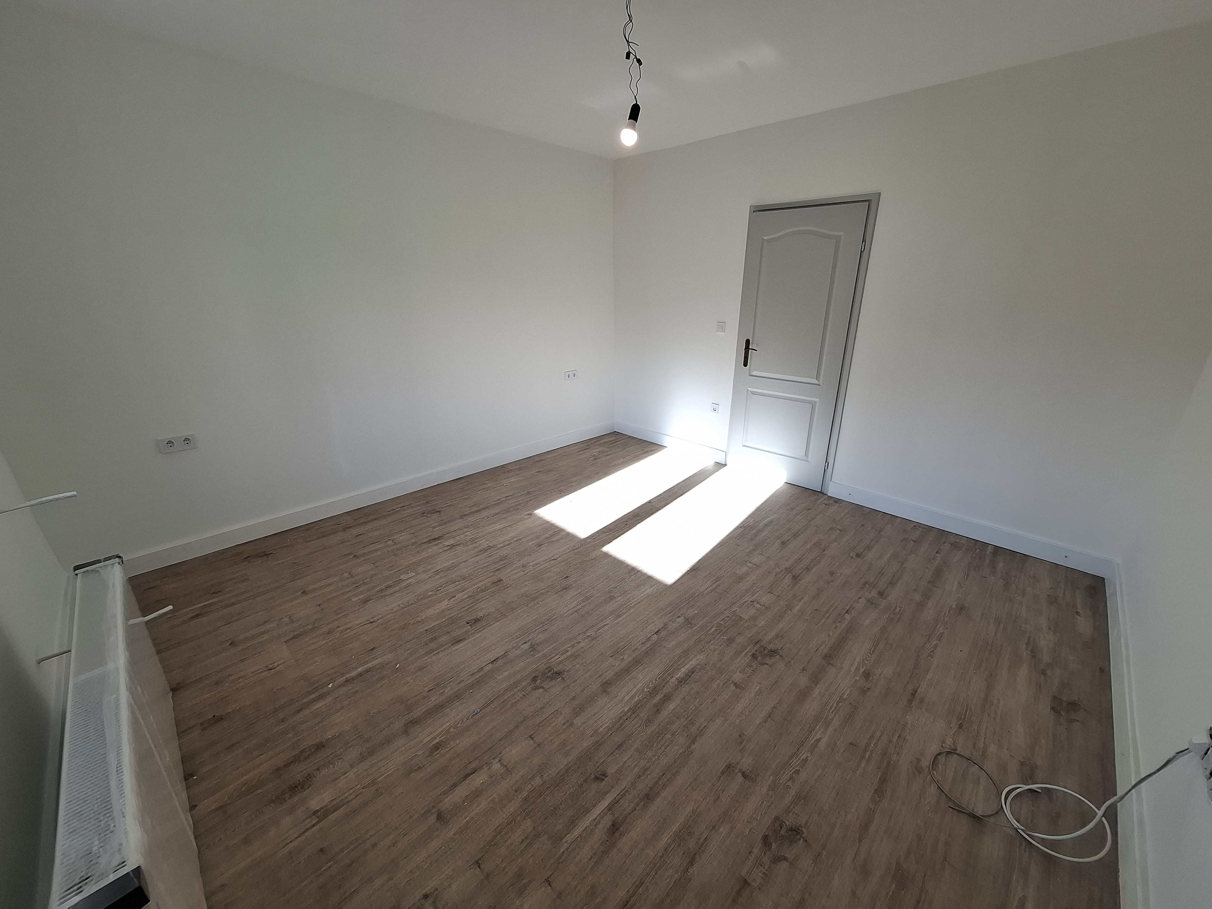 Falak festése : falak és a mennyezet glettelt, fehér festéssel.