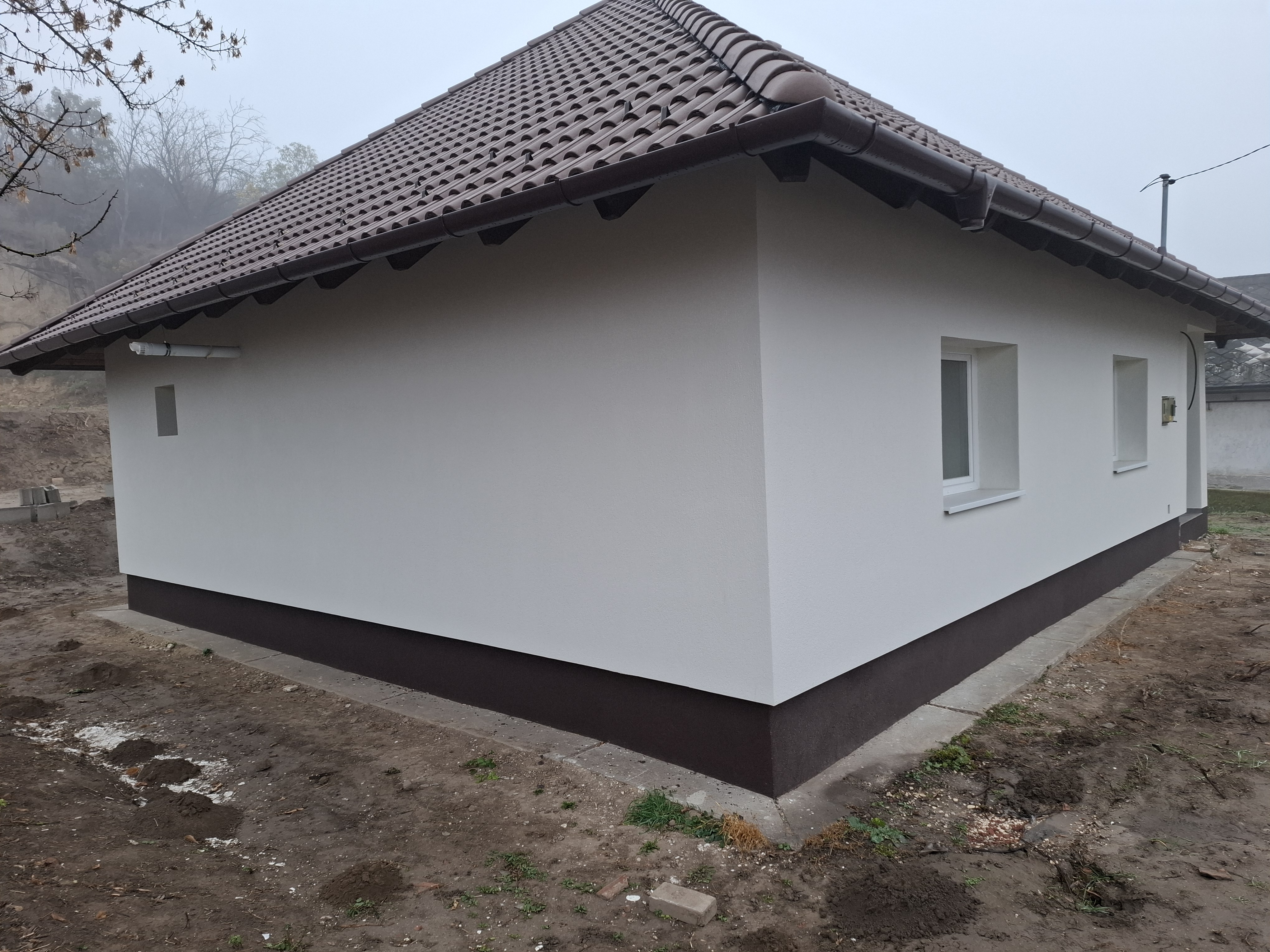 - Tetőszerkezet: hagyományos fa tetőszerkezet, 25 cm szigetelés az emeleti födémen terv szerint.