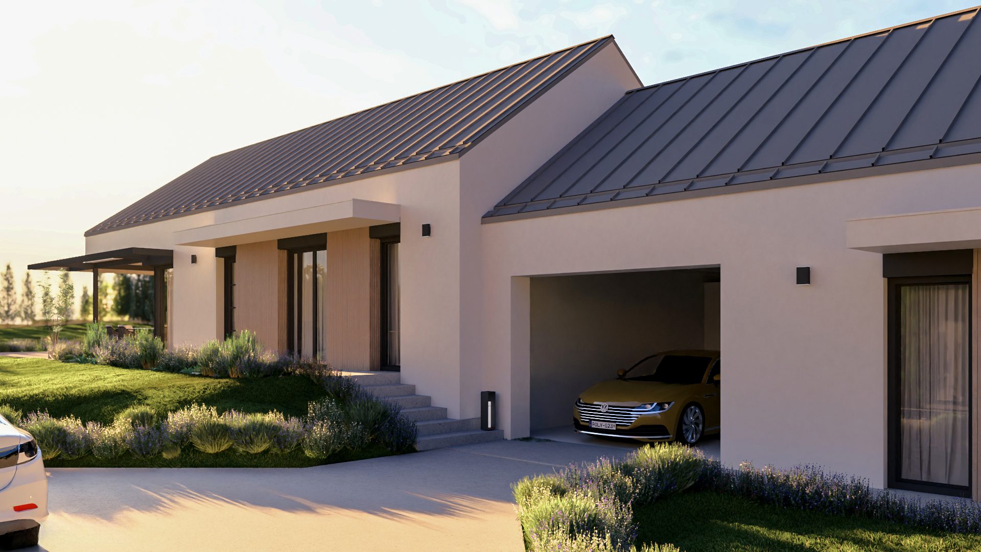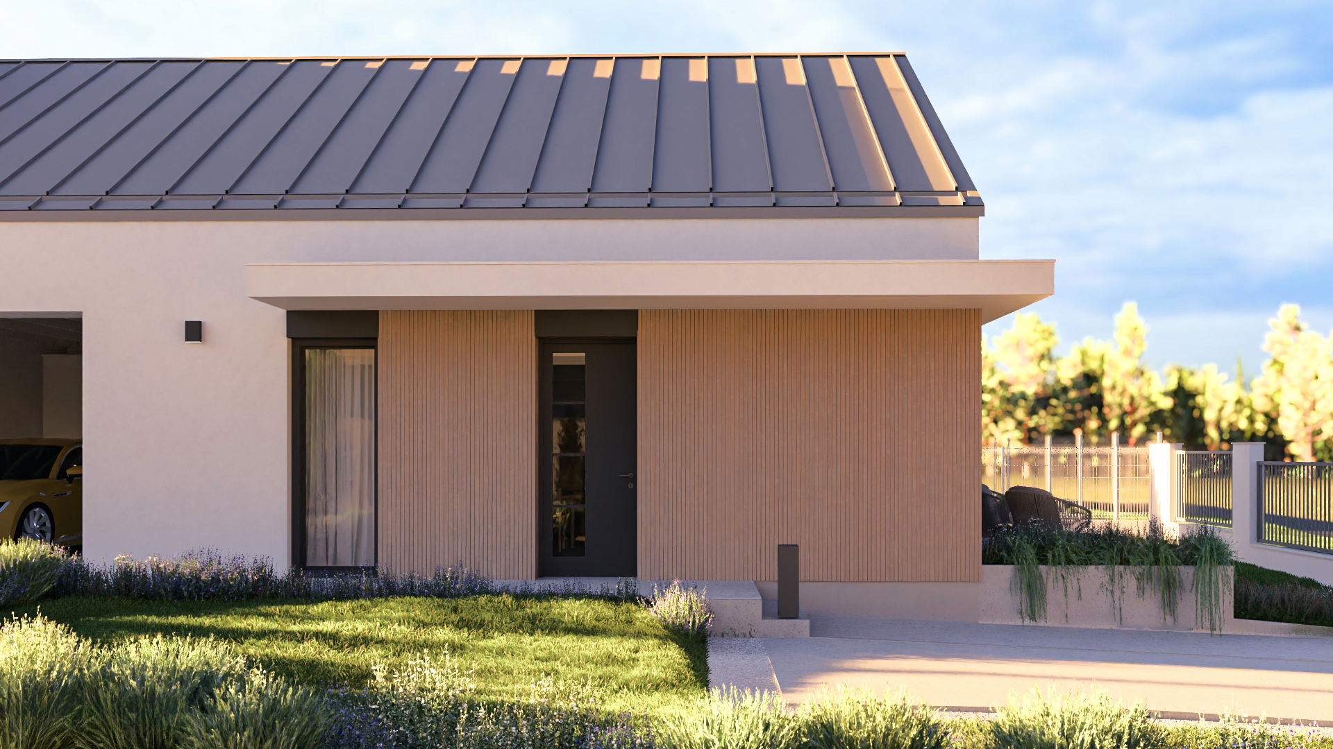 8. A tető a hőhídmentesítő szigeteléssel ellátott, C20/25-16-F2-XC1 minőségű vasbeton koszorúra rögzített Szeglemezes tetőszerkezet, mely Bramac Tectura Novo, vagy Creaton Kapstadt cseréppel kerül fedésre, Ereszcsatorna antracit színben készül.