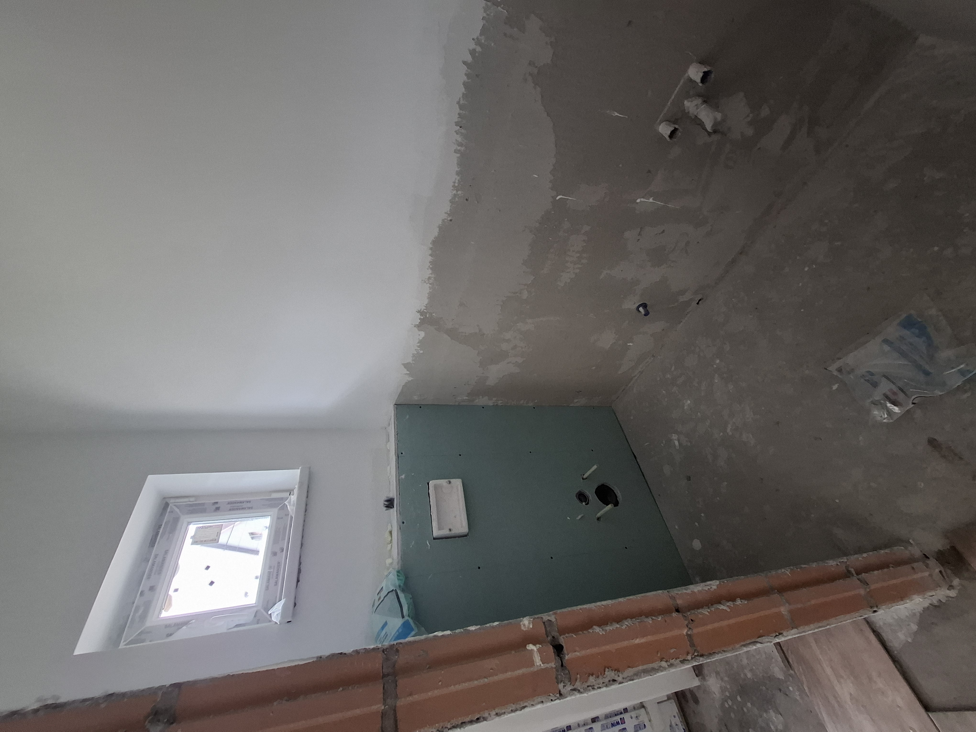 Falak festése : falak és a mennyezet glettelt, fehér festéssel.