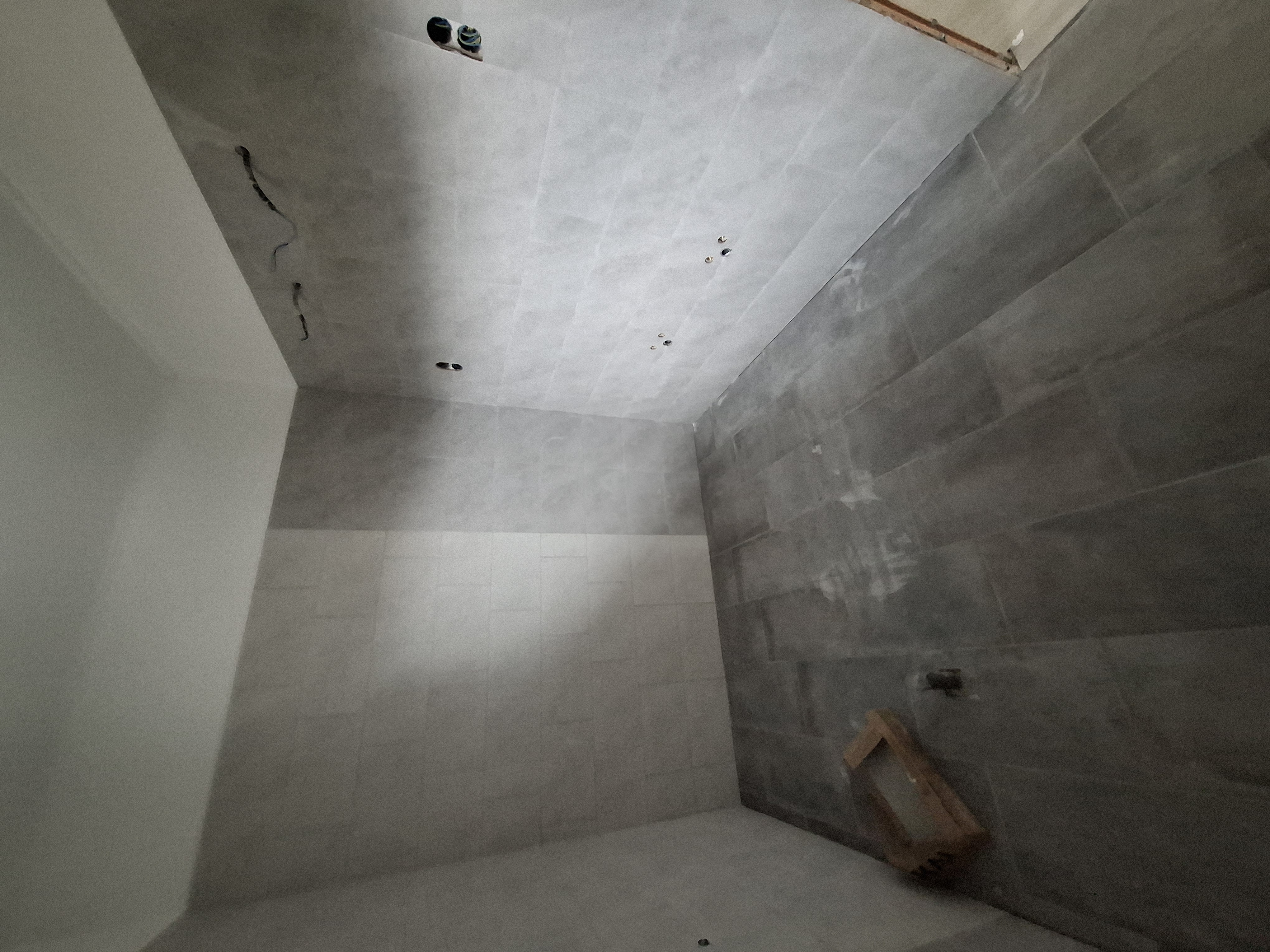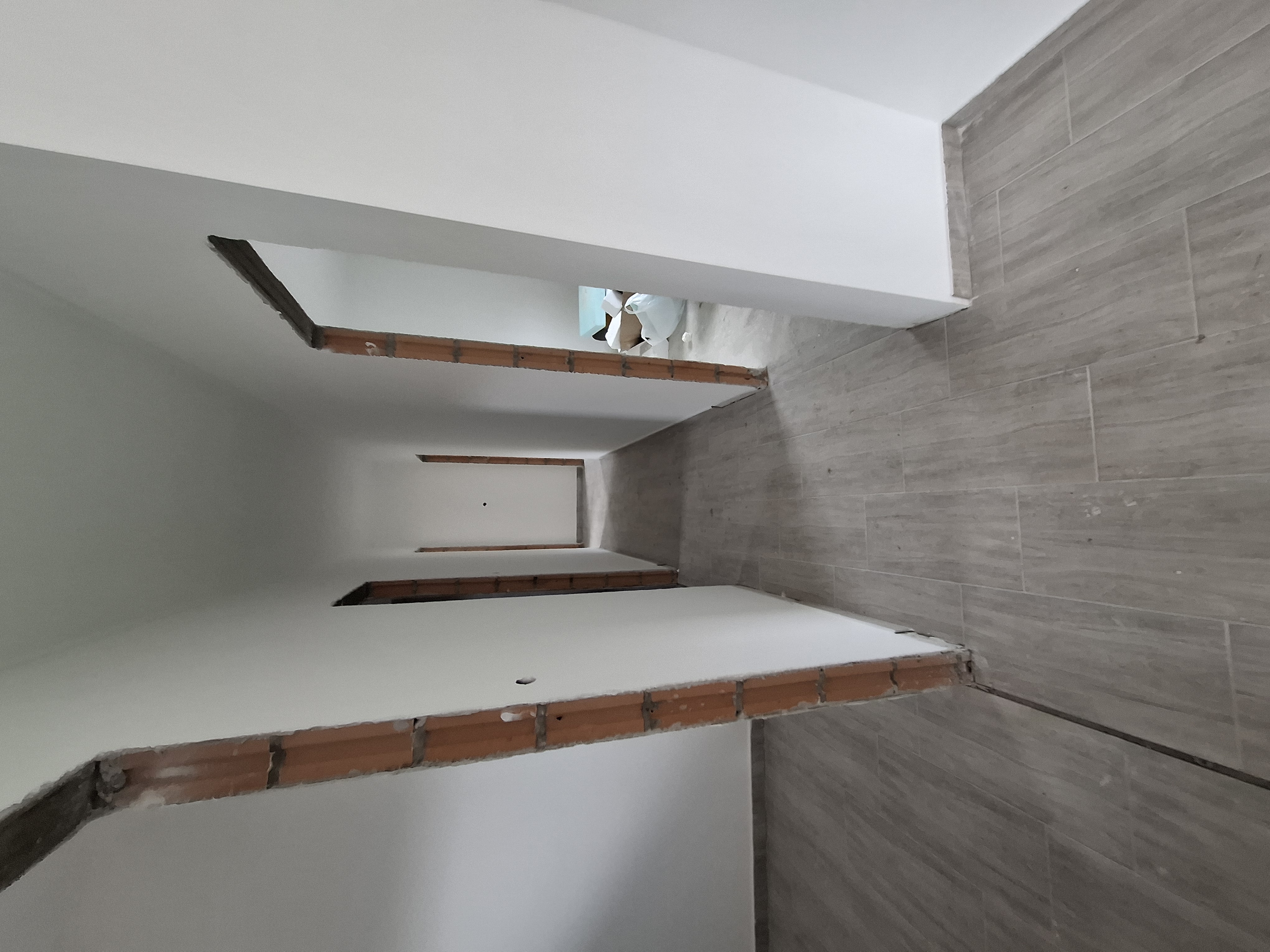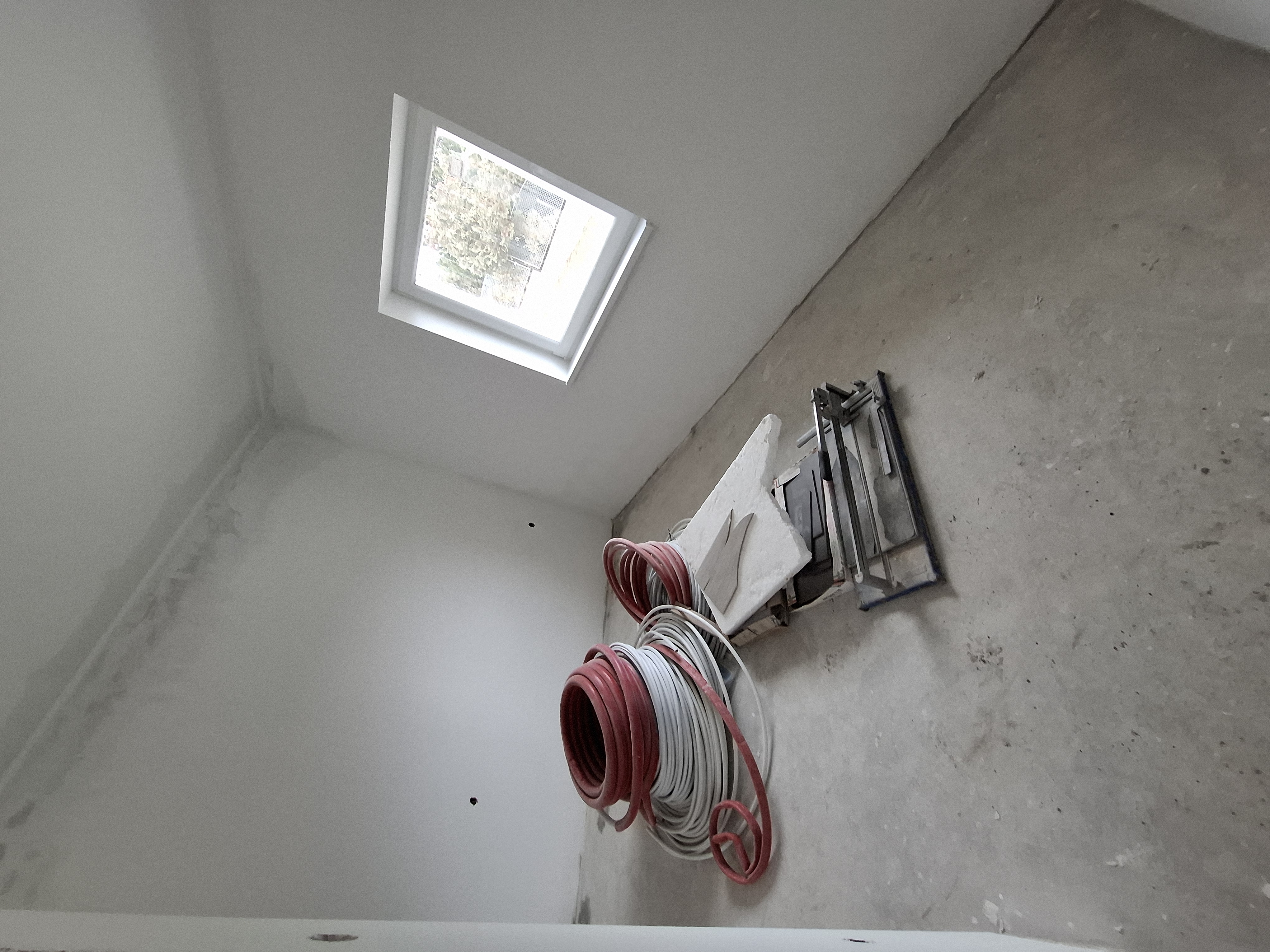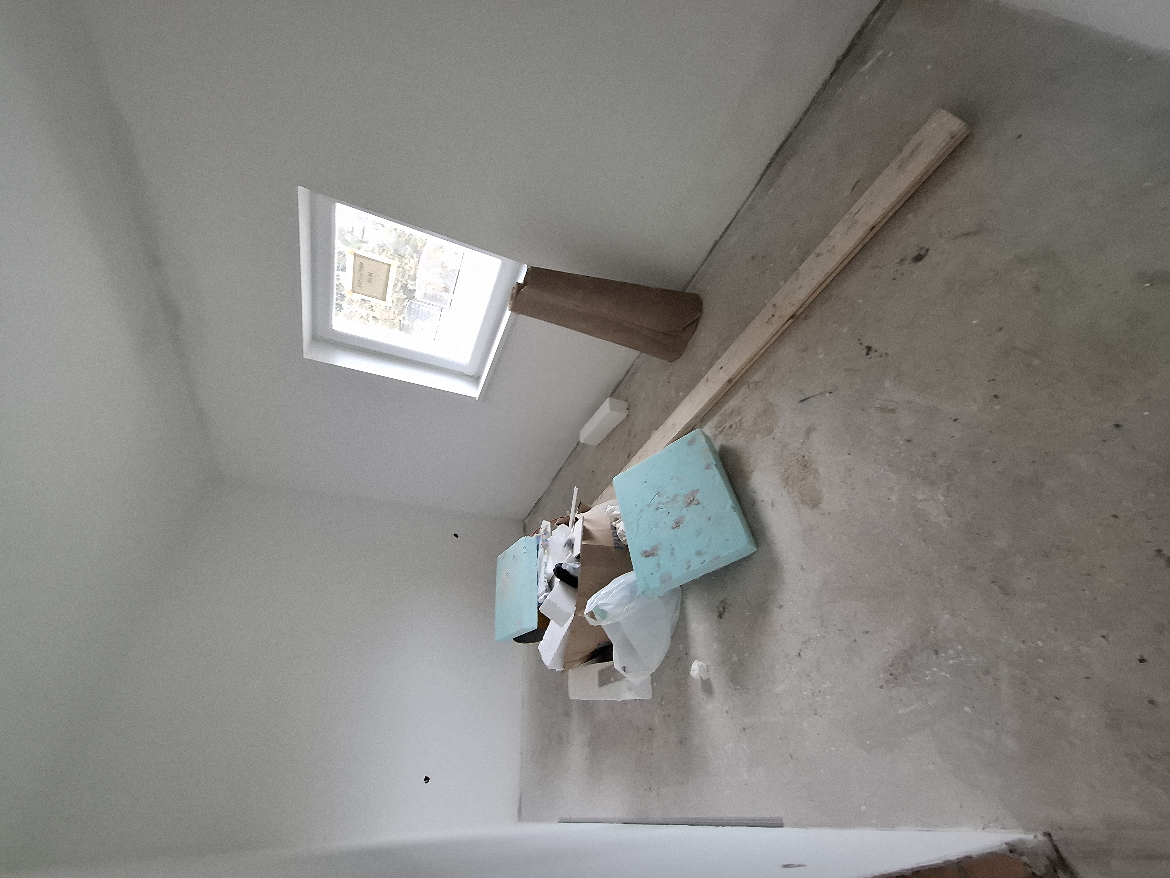 Falak festése : falak és a mennyezet glettelt, 2-szeri fehér festéssel.
