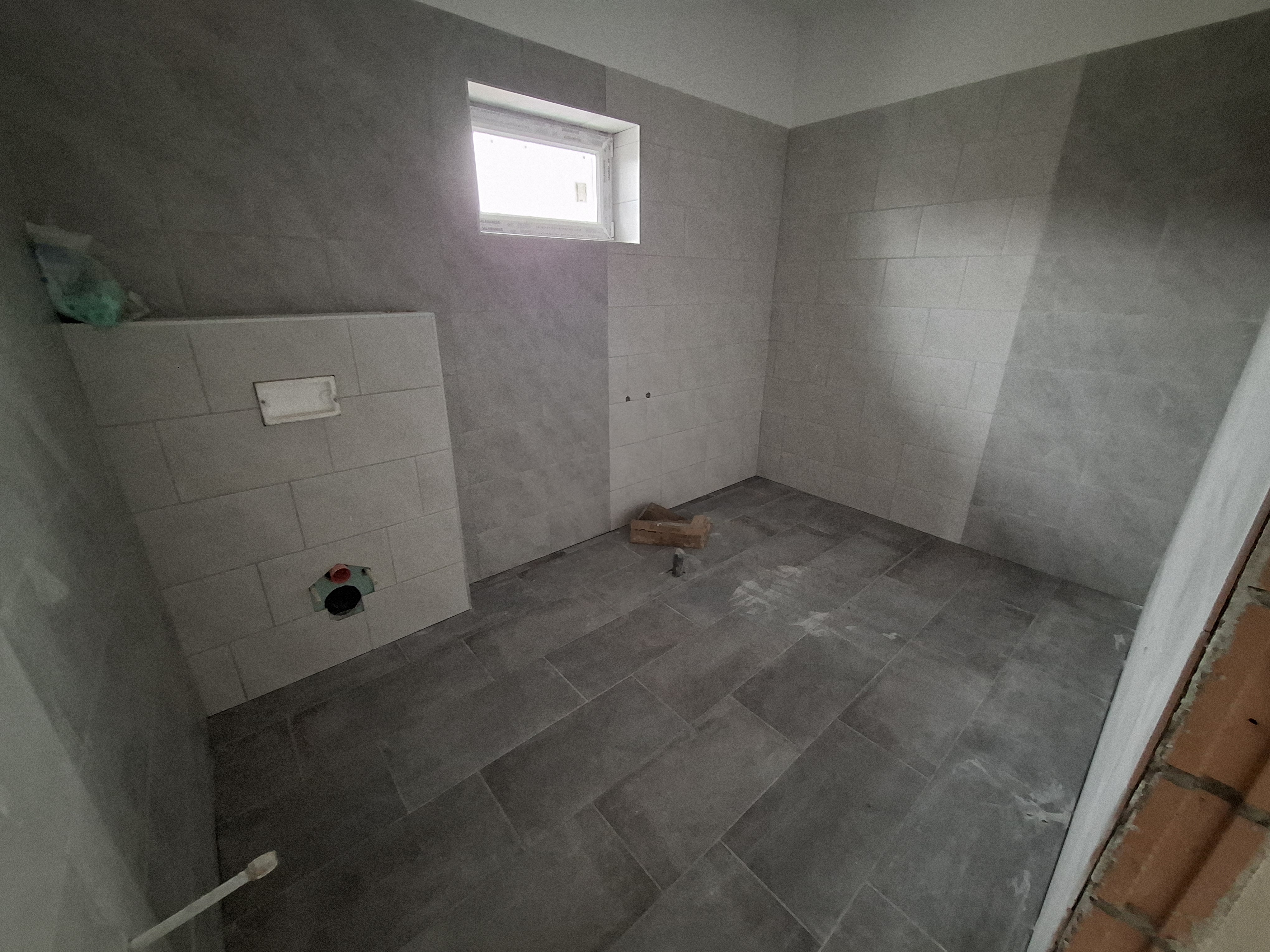 3. A wc helyiség 150 cm magasságban körbe burkolva kerül átadásra