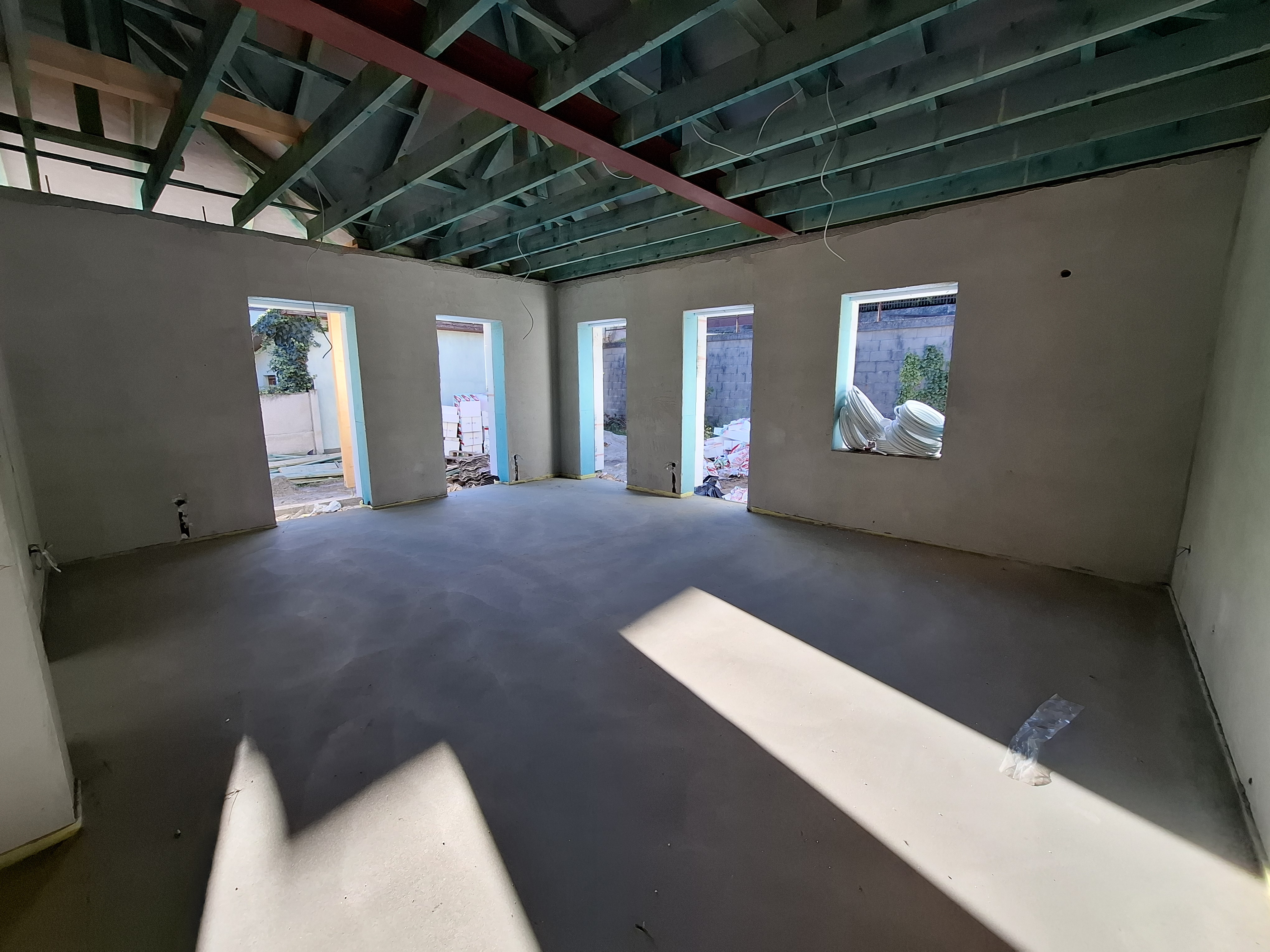 - Falak festése: falak és mennyezet glettelt, 2-szeri fehér festéssel