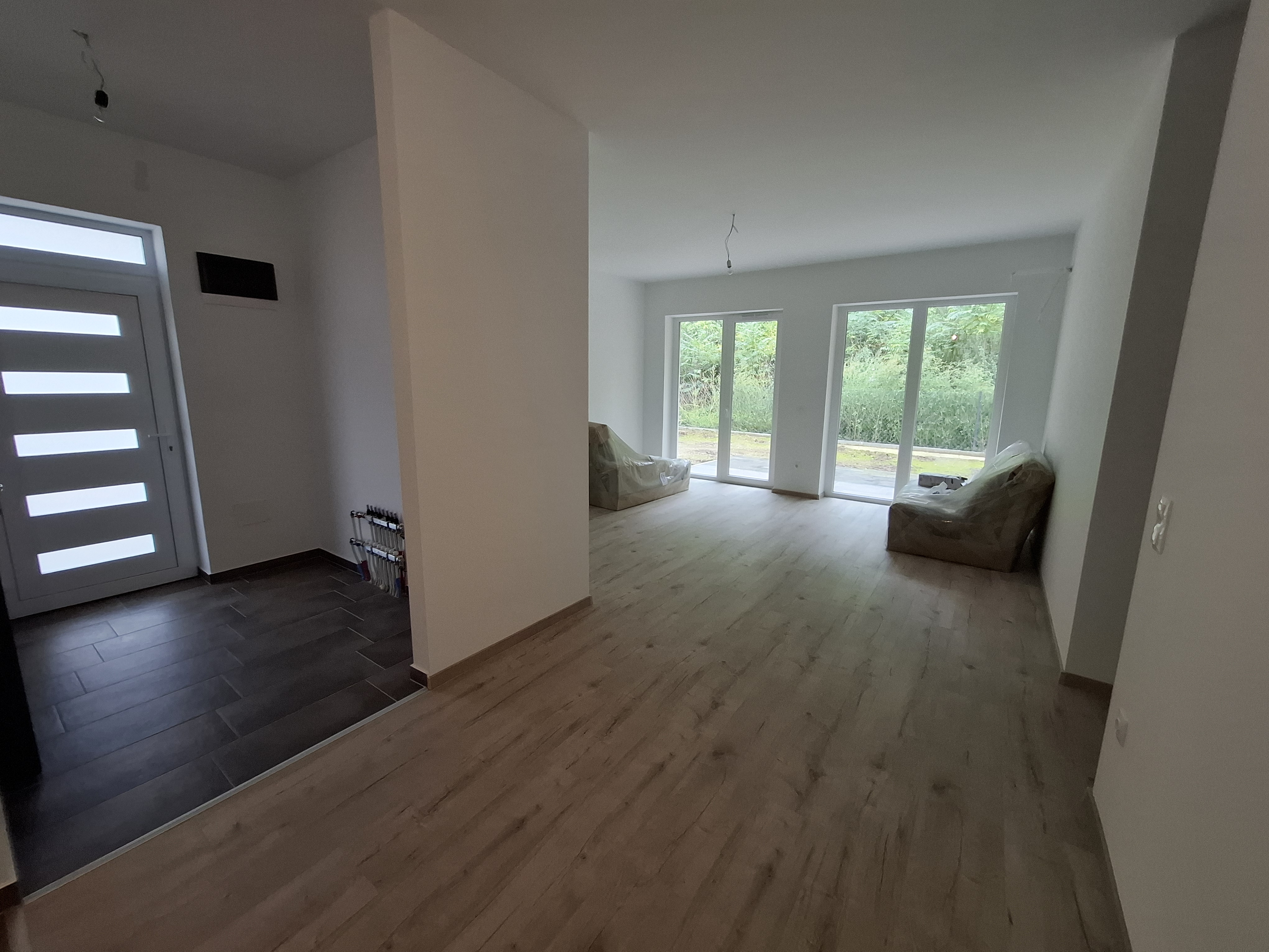 Új építésű, 3 szobás, kertes, ikerházi lakás, saját kocsibeállóval, Mendén eladó!
