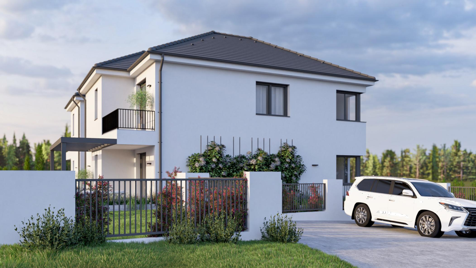 Budapesttől (17.kerület) 12km-re Mendén, A+ besorolású, földszintes, két lakásos ikerház, 94.84nm-es, három szoba, nappalis lakása, kizárólagos használatú kerttel, saját kocsibeállóval, 12.81nm-es fedett terasszal, 34.5nm-es terasszal, 24.27nm garázzsal, tárolóval, 2026 nyári átadással eladó!