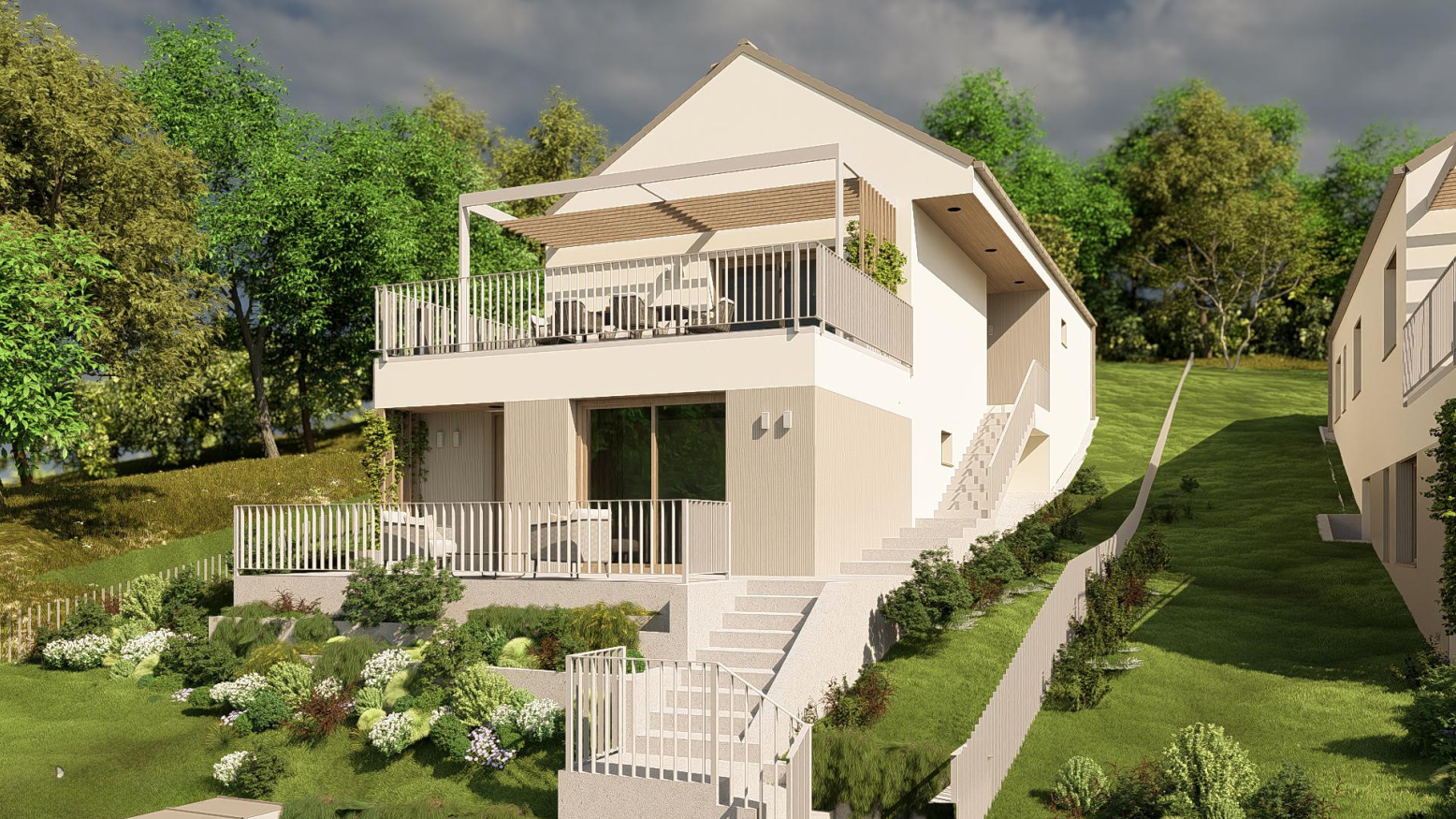 Vác melletti, csendes, nyugodt településen, Vácdukán, legelővel, dombokkal, erdővel határolt, örök panorámás utcában épülő, rendkívül alacsony rezsiből fenntartható ikerház, utcafronti, bruttó 96nm lakóterületű, három szoba, nappali, külön étkezőkonyhás lakása, 20nm-es garázzsal, 30nm-es terasszal, 600nm-es, elkerített, kizárólagos használatú telekkel eladó!