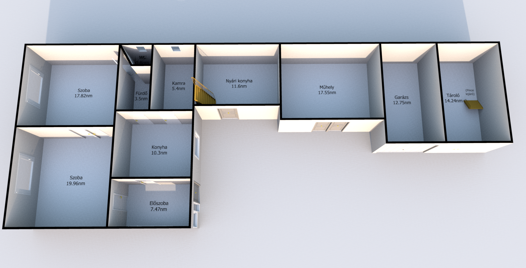 - Falak festése: falak és mennyezet glettelt, 2-szeri fehér festéssel