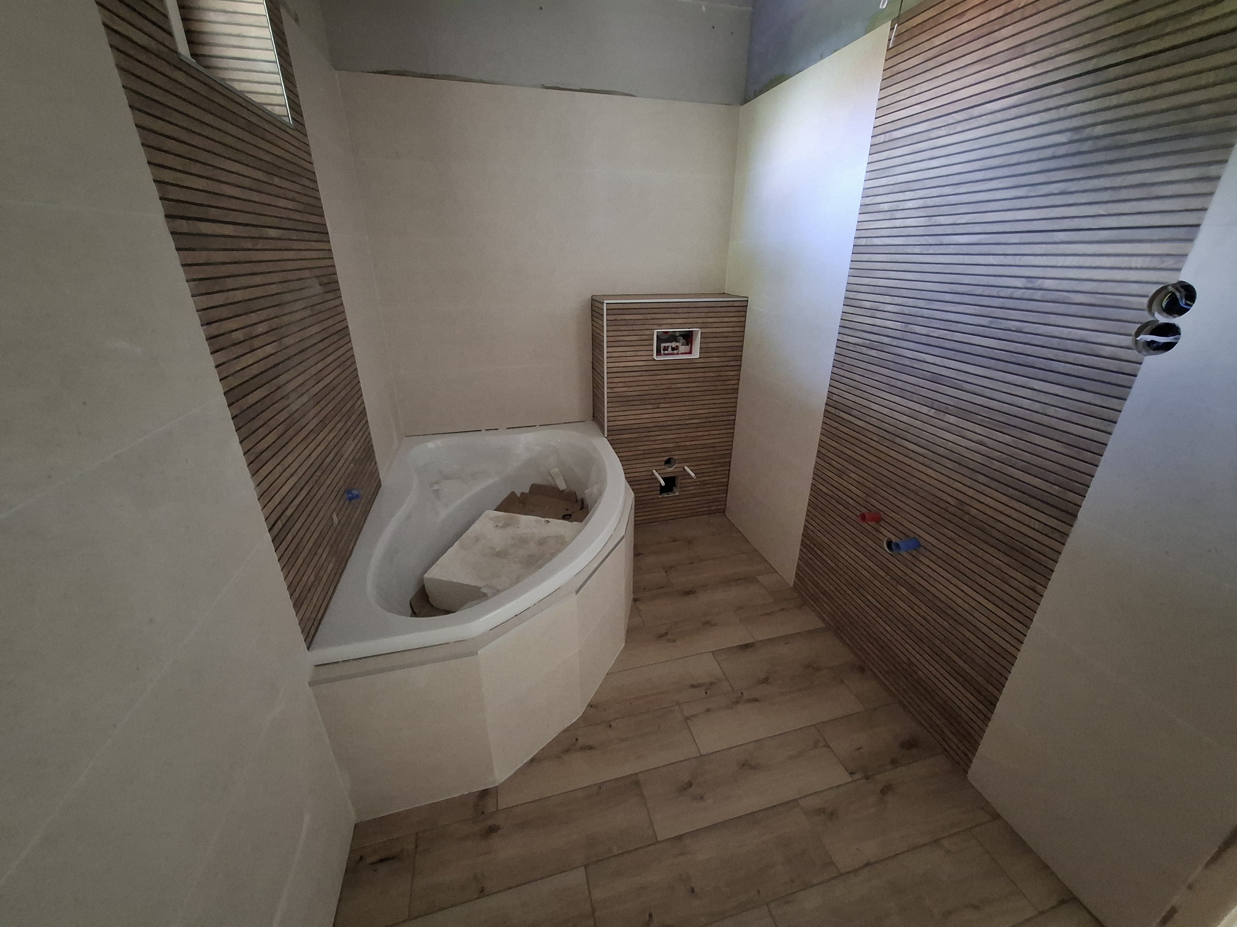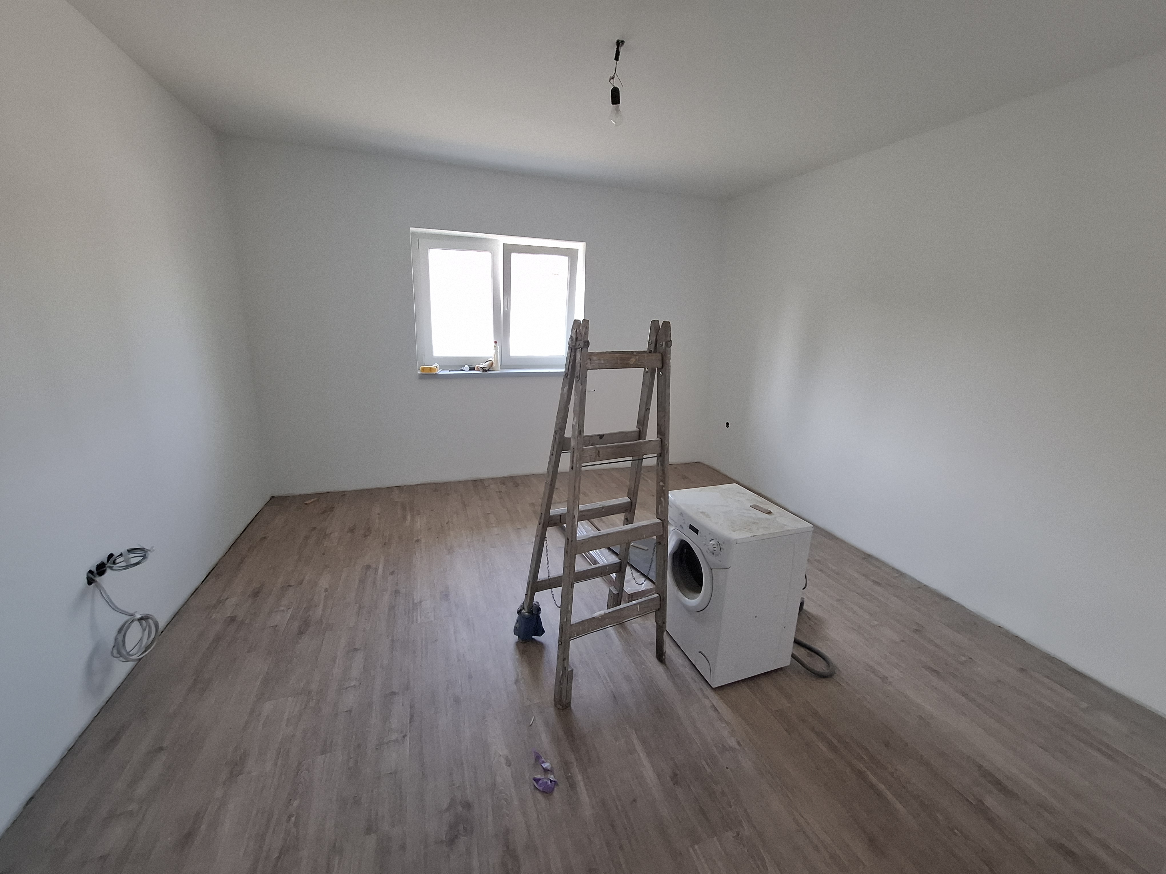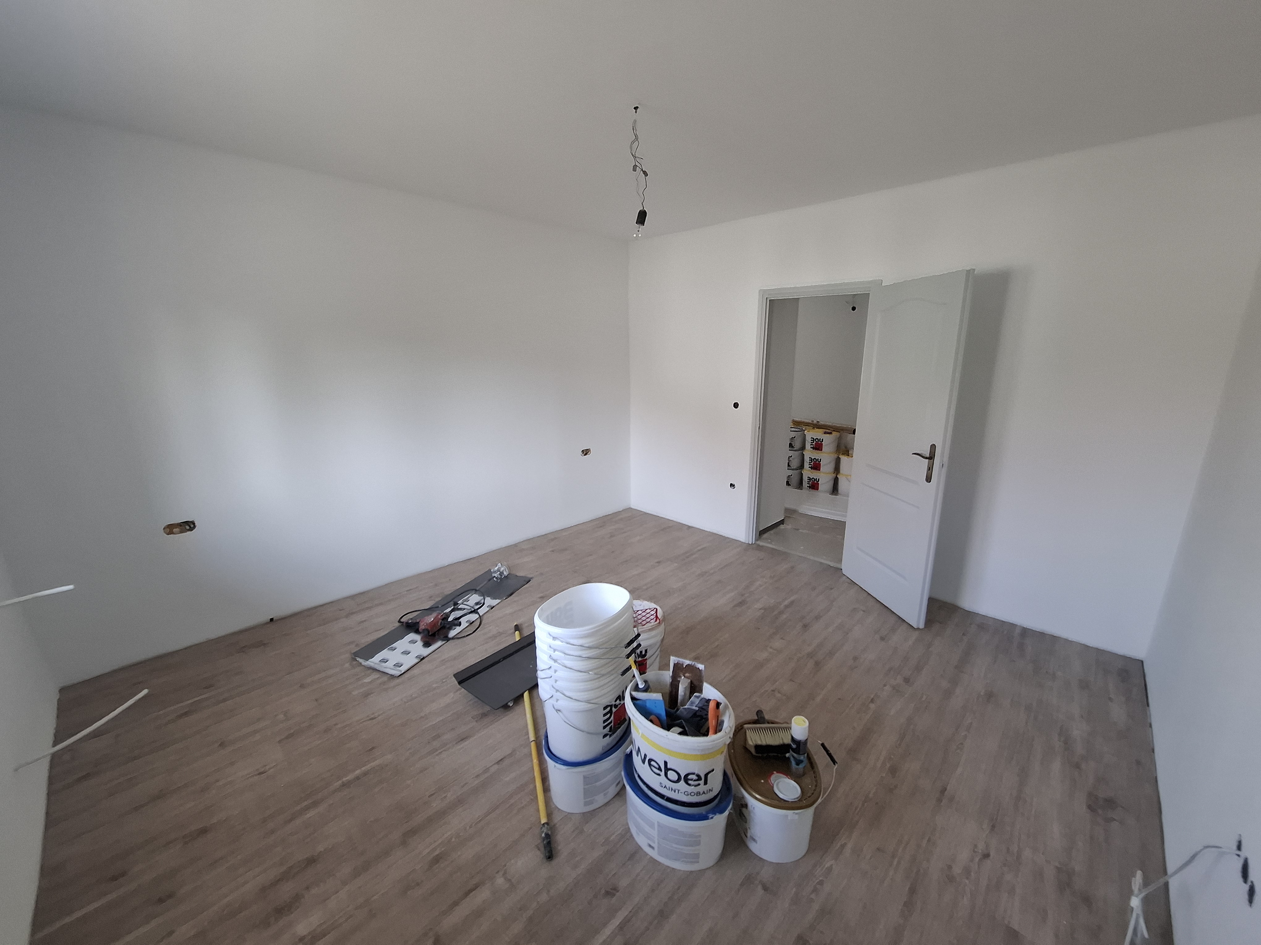 Falak festése : falak és a mennyezet glettelt, fehér festéssel.