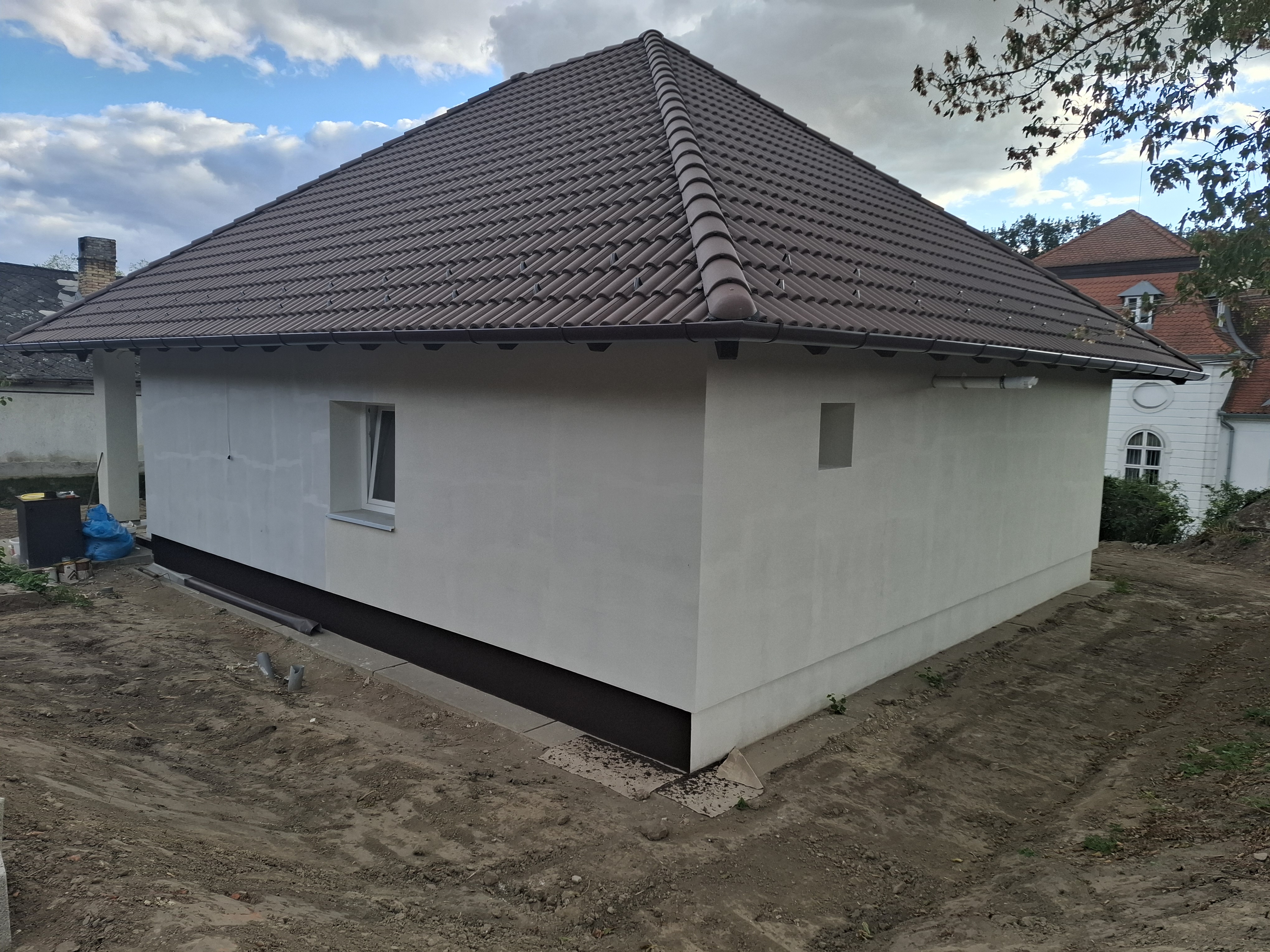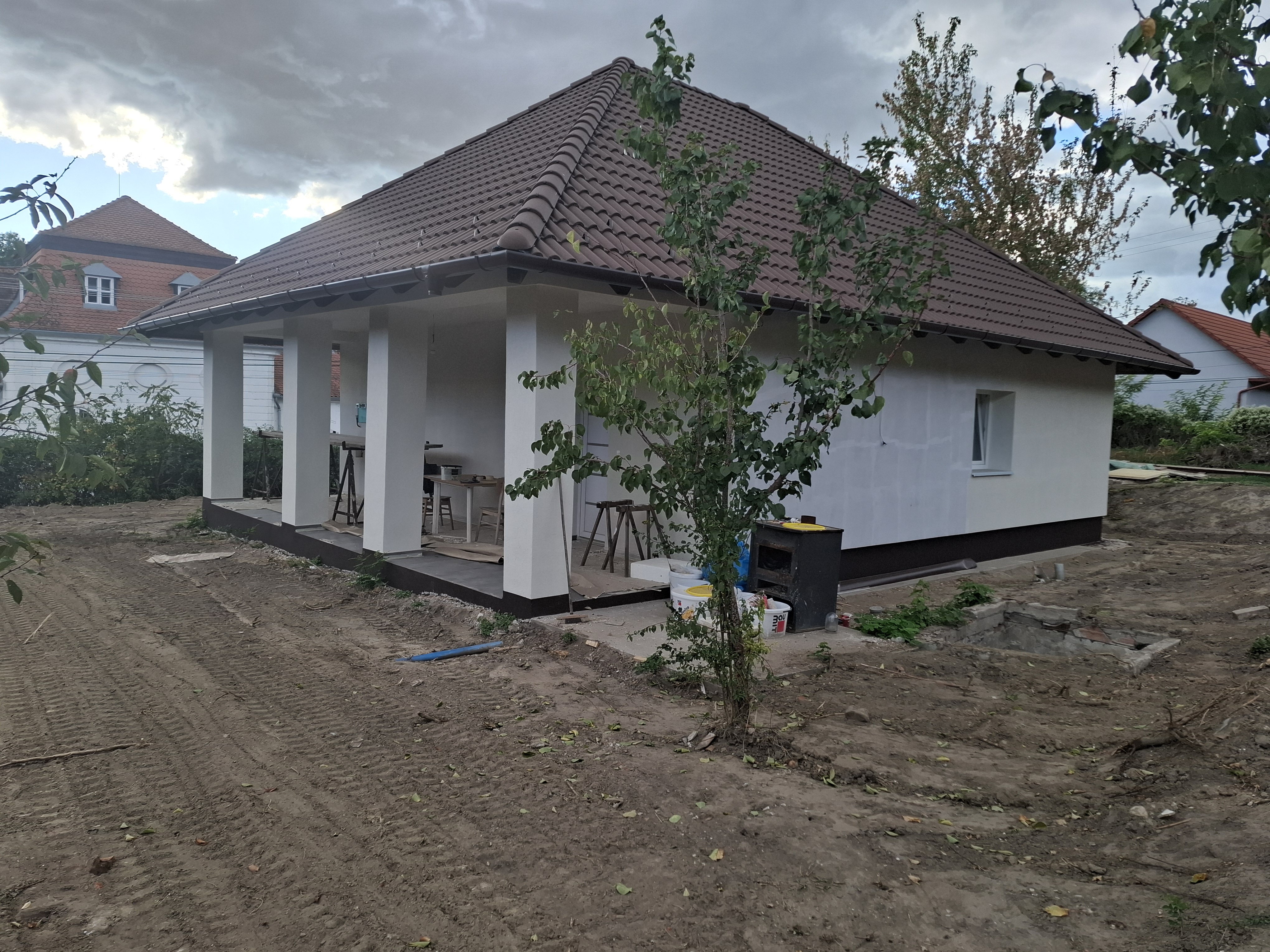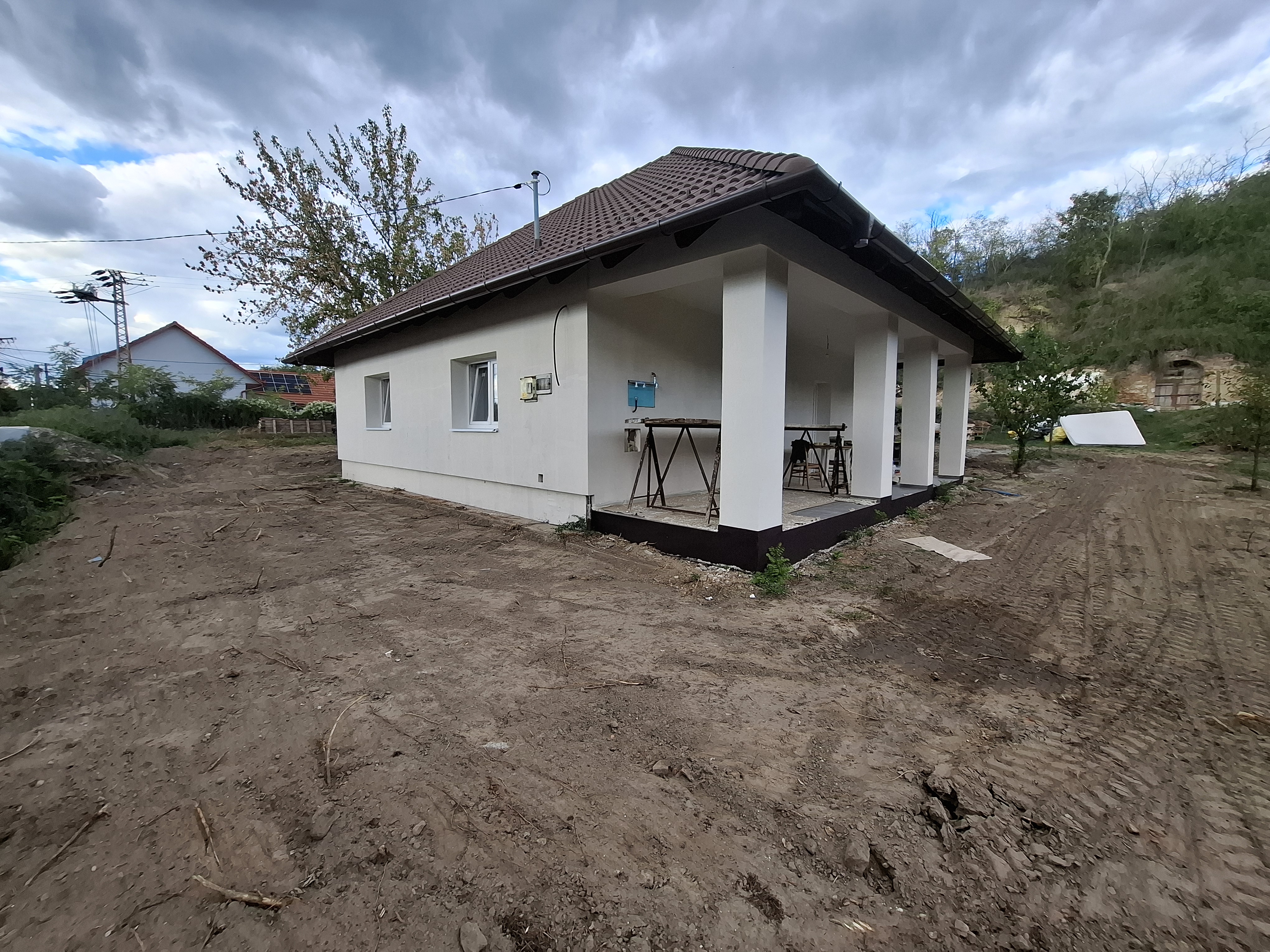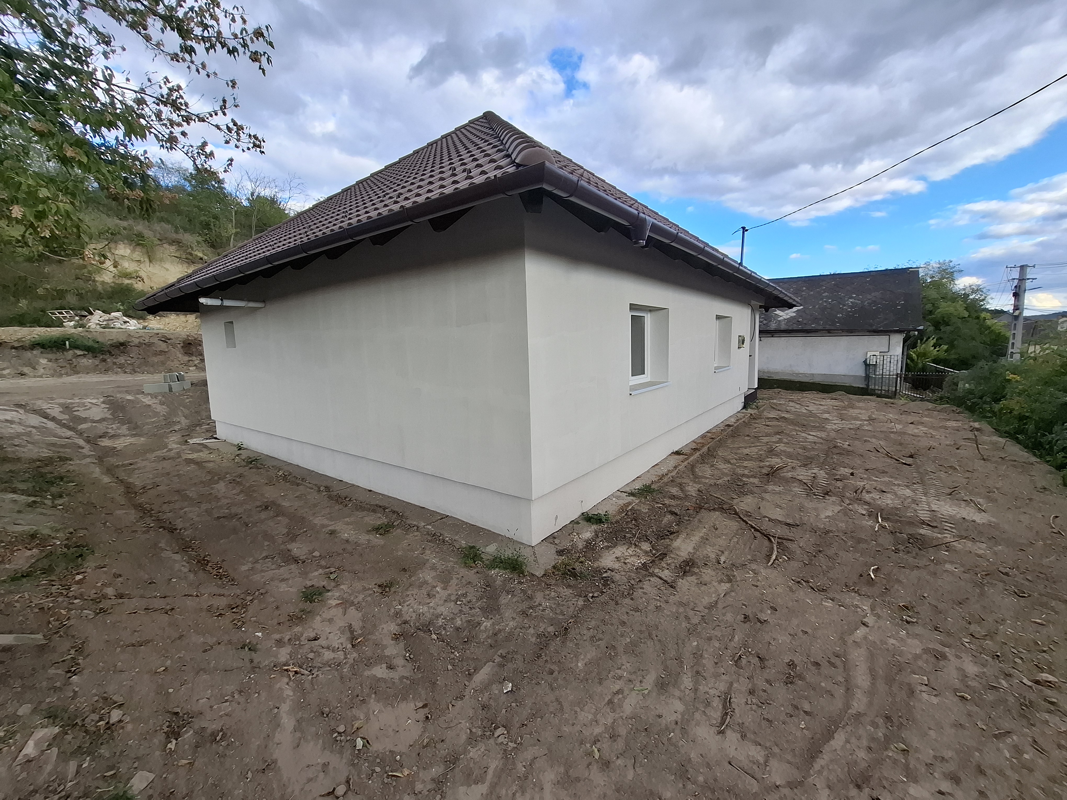 - Tetőszerkezet: hagyományos fa tetőszerkezet, 20 cm szigetelés az emeleti födémen terv szerint.