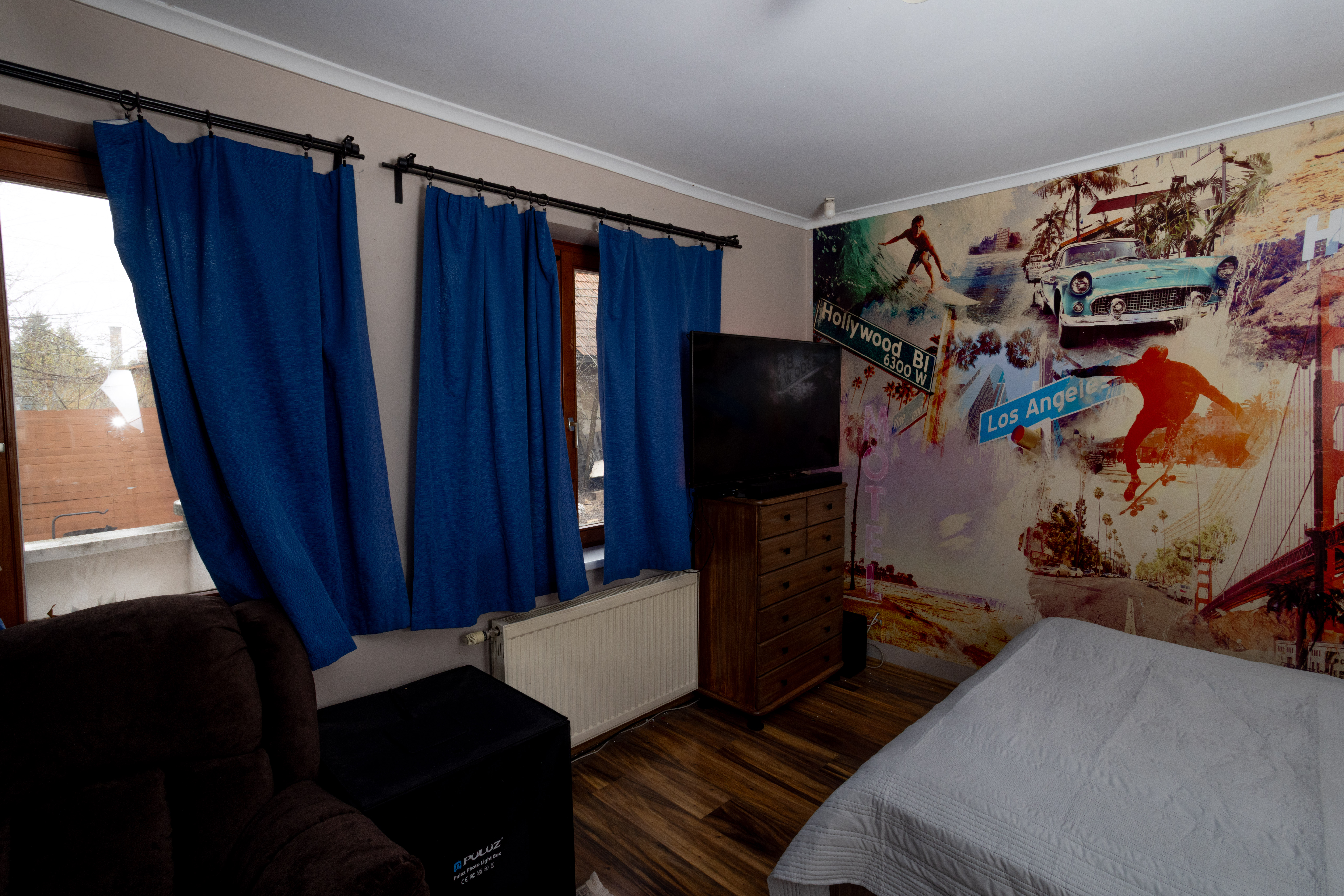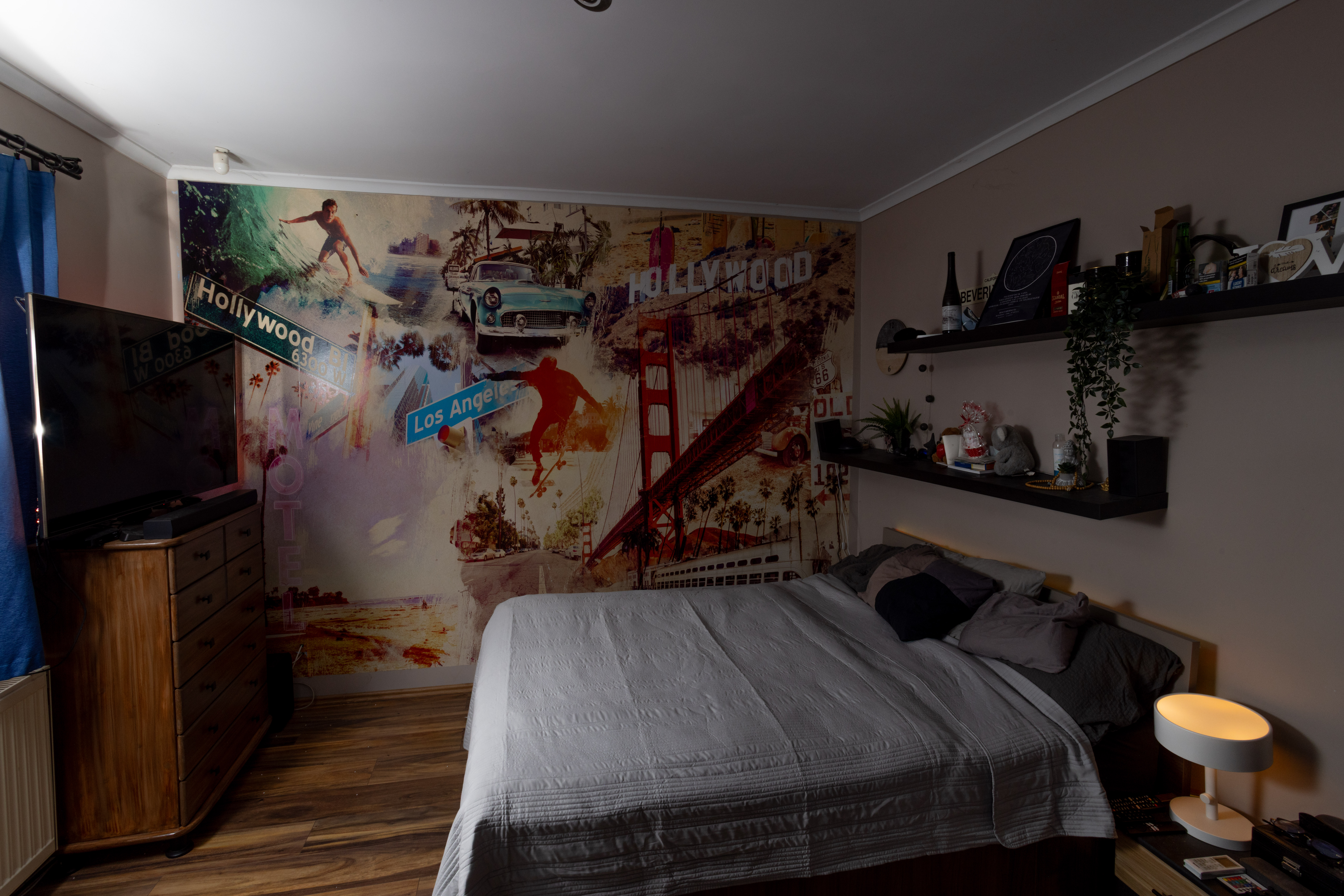 Falak festése : falak és a mennyezet glettelt, fehér festéssel.