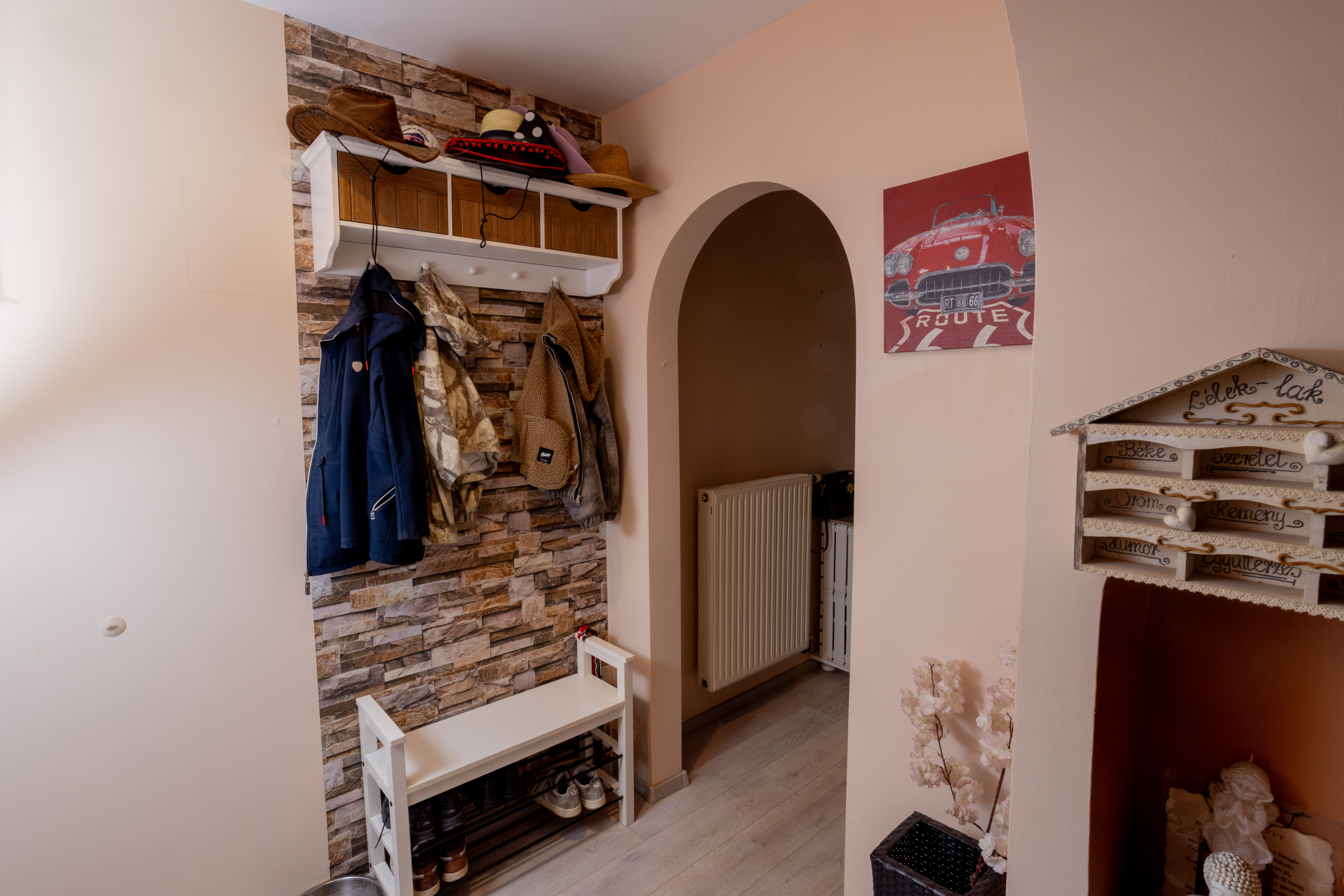 - Belső nyílászárók: teli ajtó laminált felülettel