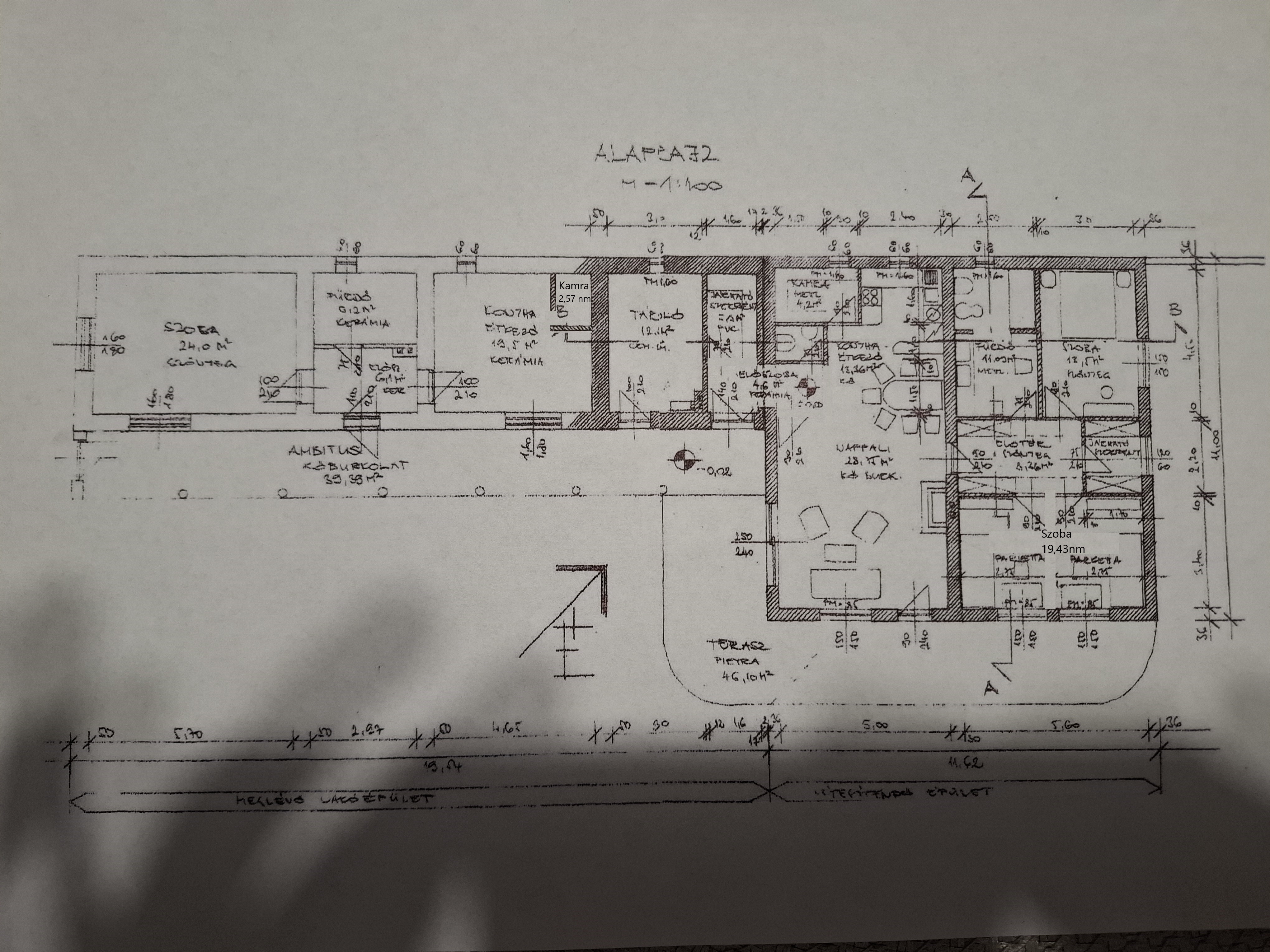 - Tetőszerkezet: hagyományos fa tetőszerkezet, 20 cm szigetelés az emeleti födémen terv szerint.