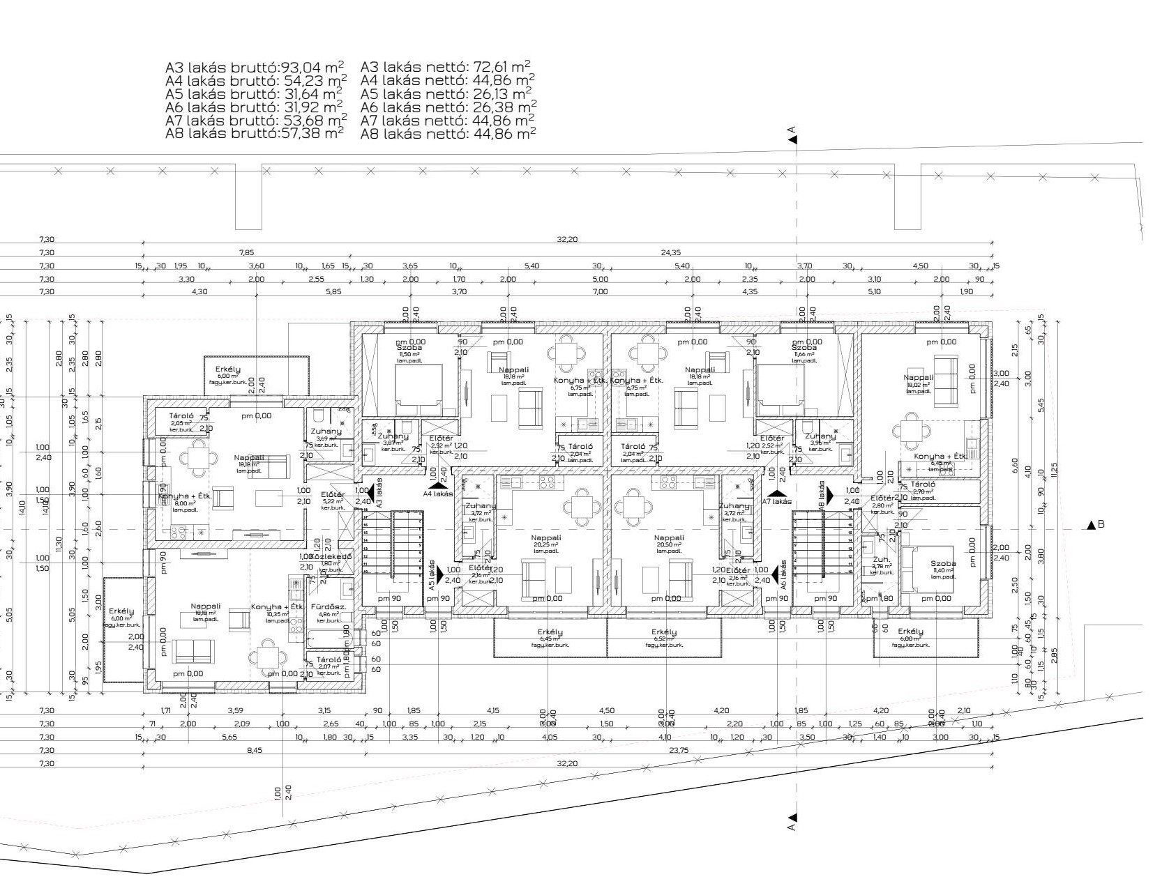 - Alapozás: beton sávalap, monolit vb. talpgerendával, modifikált bitumenes vastaglemez talajnedvesség elleni vízszigeteléssel.