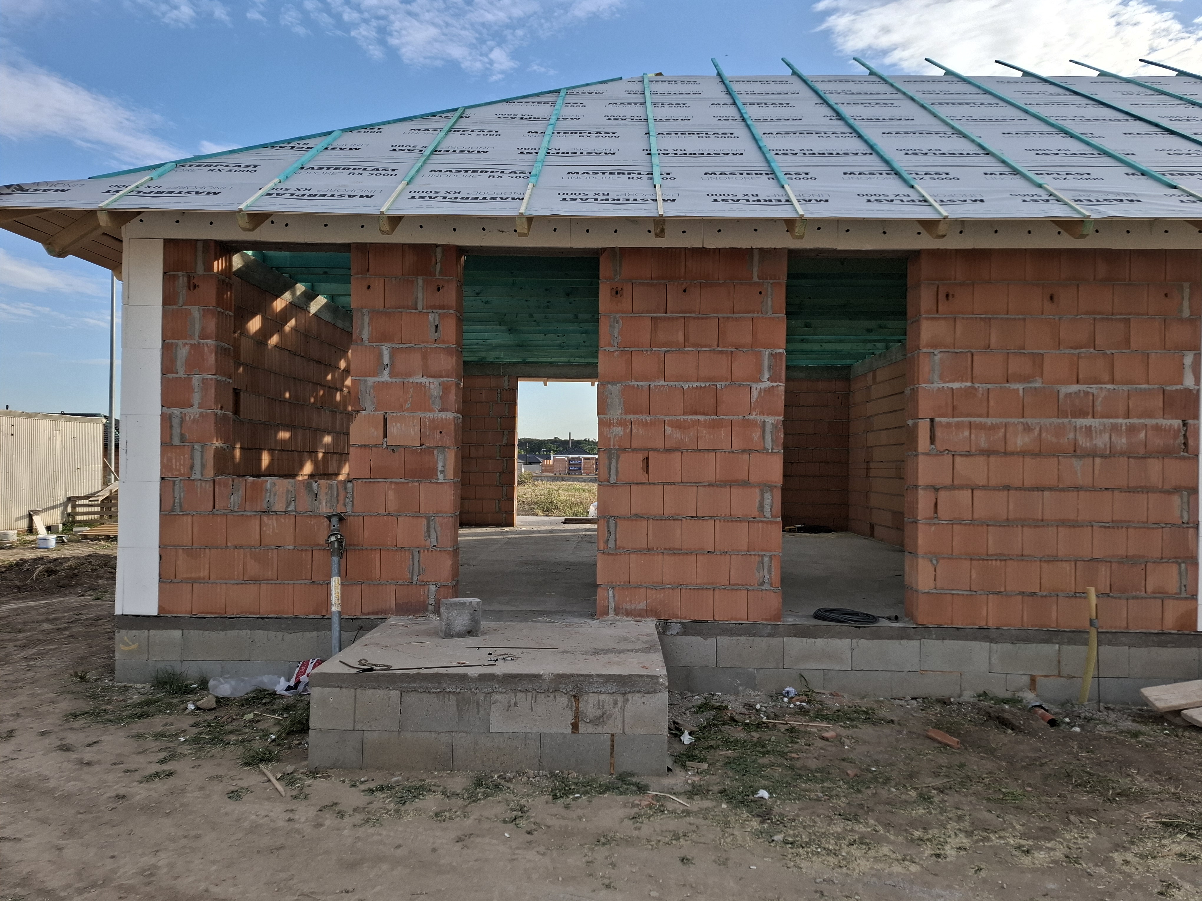 - Tetőszerkezet: hagyományos fa tetőszerkezet, 25 cm szigetelés az emeleti födémen terv szerint.