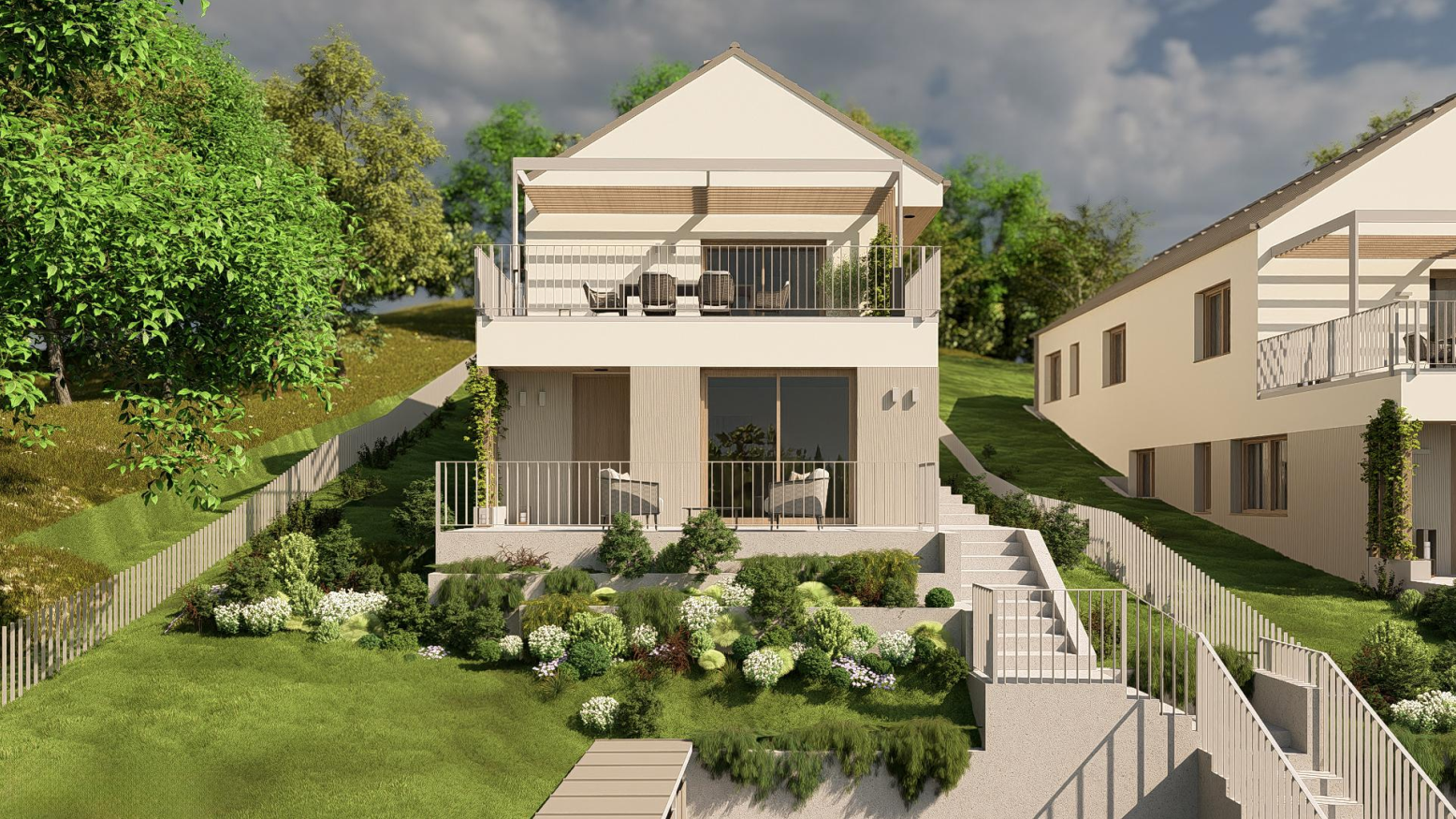 A+ besorolású, két szintes, négy lakásos társasház, 79nm-es, emeleti, három hálószoba, nappalis lakása, 8nm-es erkéllyel, tárolóval, saját kocsibeállóval, 2026 augusztusi átadással eladó!