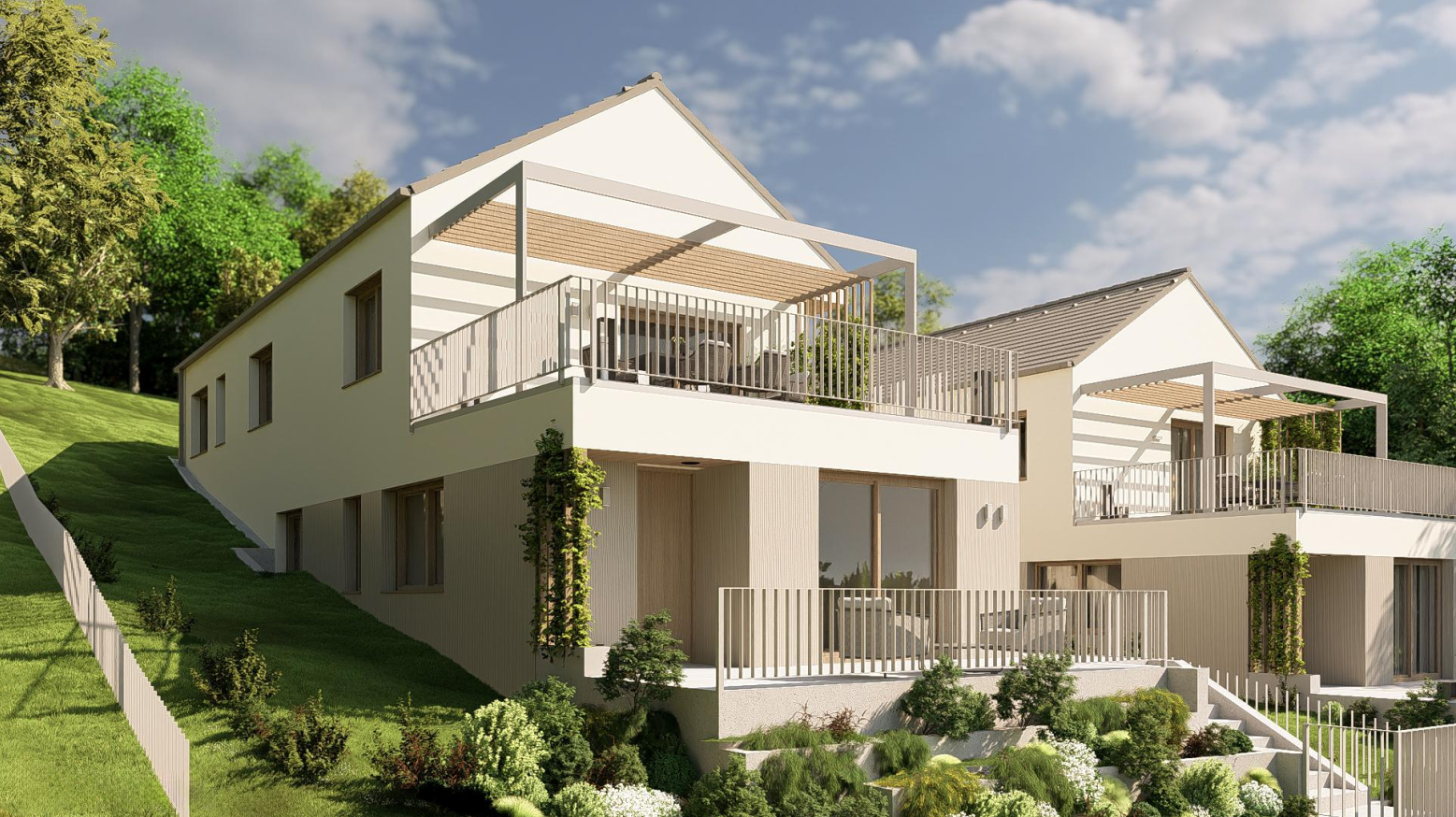 Budapesttől (17.kerület) 12km-re Mendén, A+ besorolású, földszintes, két lakásos társasház, 92.81nm-es, három szoba, nappalis lakása, kizárólagos használatú kerttel, saját kocsibeállóval, 2026 nyári átadással eladó!