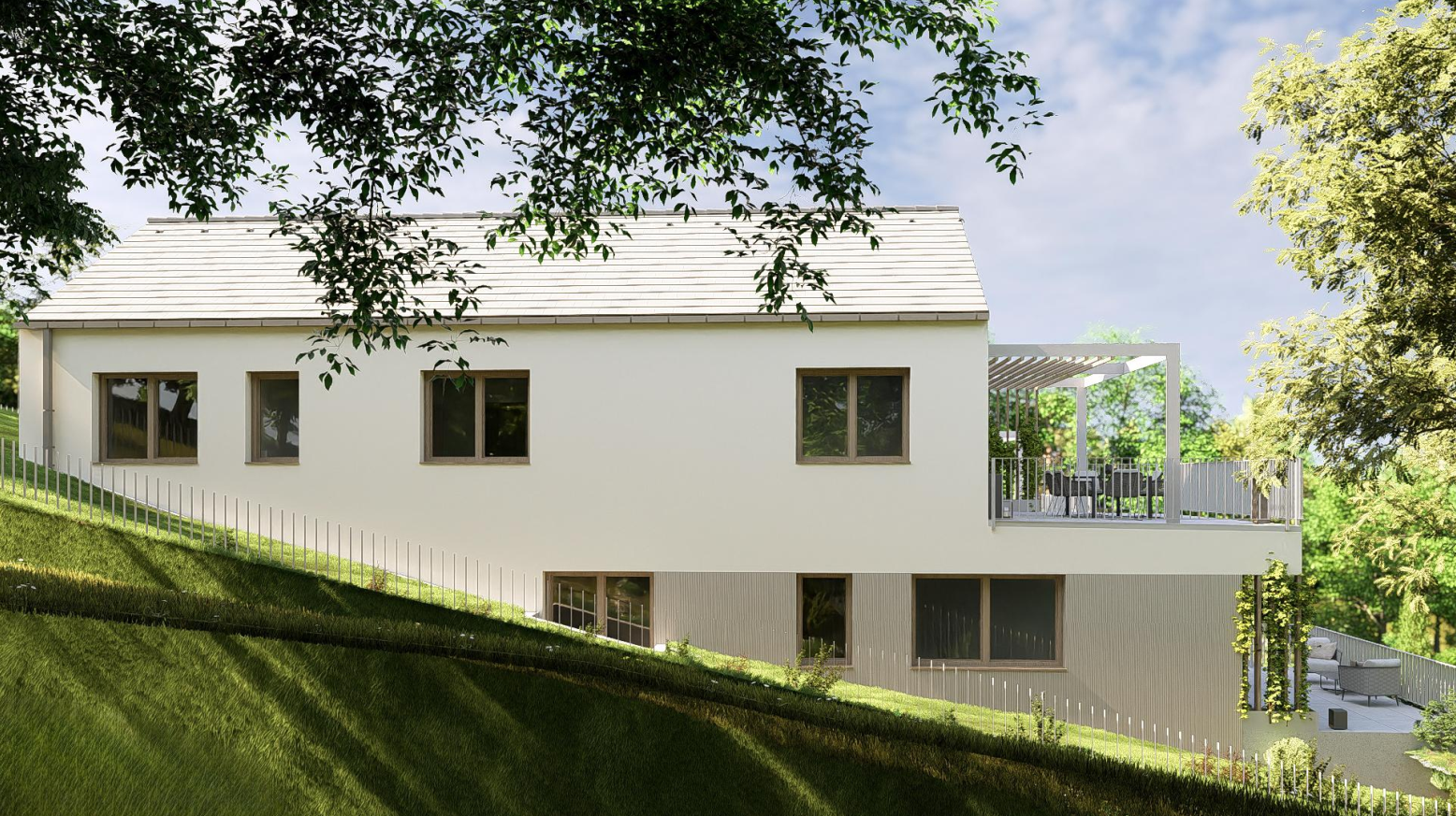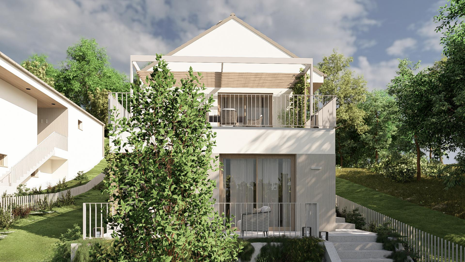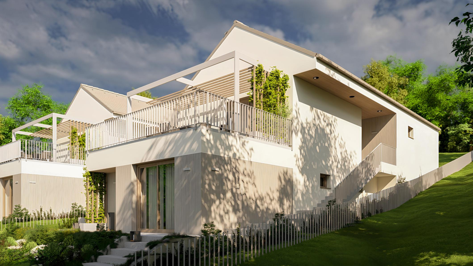 - Homlokzatvakolat: a fűtött terekhez kapcsolódó homlokzat a szükséges helyeken 20 cm EPS hőszigetelést kap, amelyre színvakolat kerül. A fűtetlen terek homlokzati részei vakolattal vagy kőburkolattal lesznek fedve. A homlokzati szín az engedélyes tervektől eltérhet a környezet miatt. A Vevő ezzel kapcsolatban kártérítési igénnyel nem élhet.