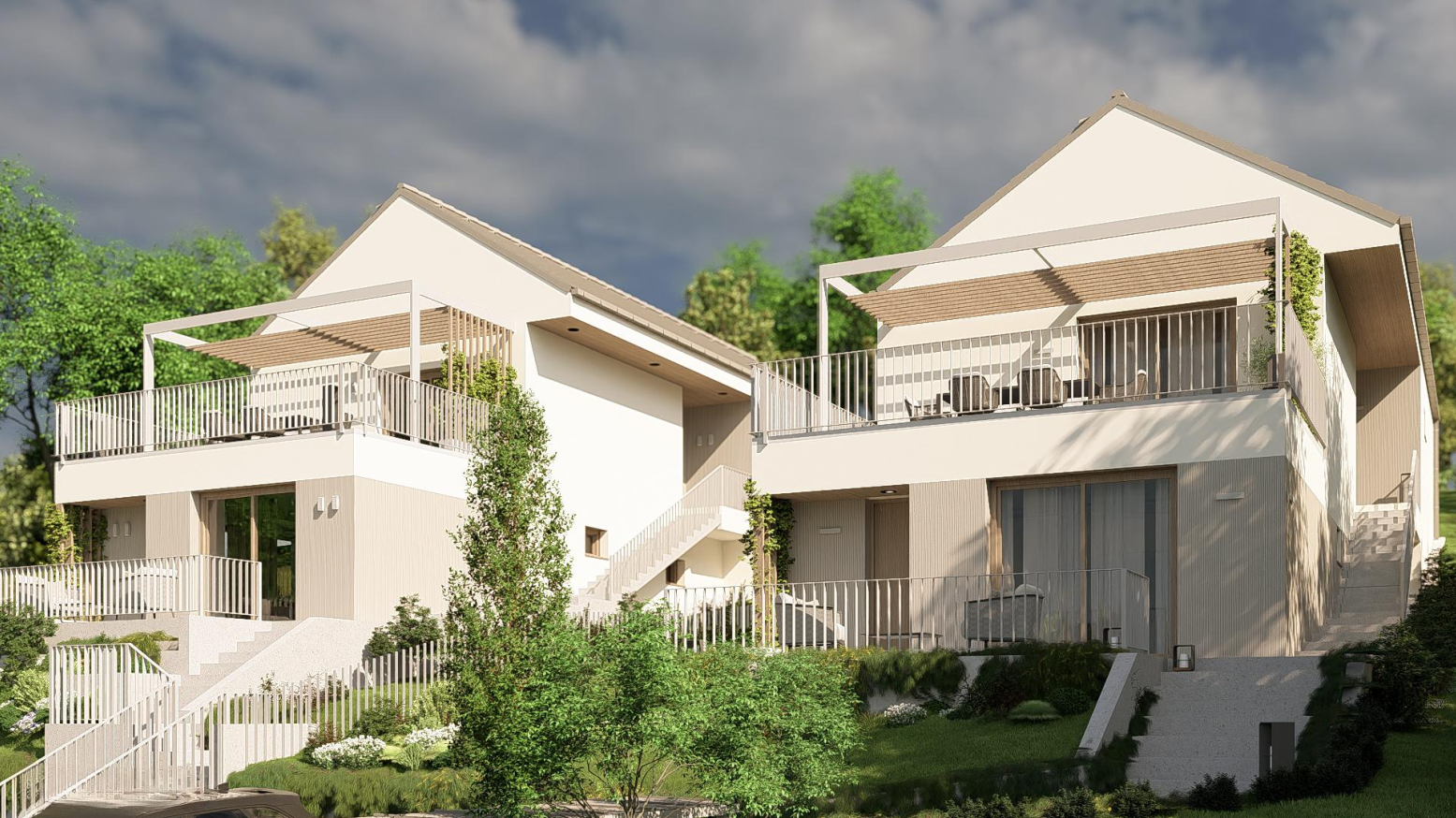 Budapesttől (17.kerület) 12km-re Mendén, A+ besorolású, földszintes, két lakásos ikerház, 94.84nm-es, három szoba, nappalis lakása, kizárólagos használatú kerttel, saját kocsibeállóval, 12.81nm-es fedett terasszal, 34.5nm-es terasszal, 24.27nm garázzsal, tárolóval, 2026 nyári átadással eladó!