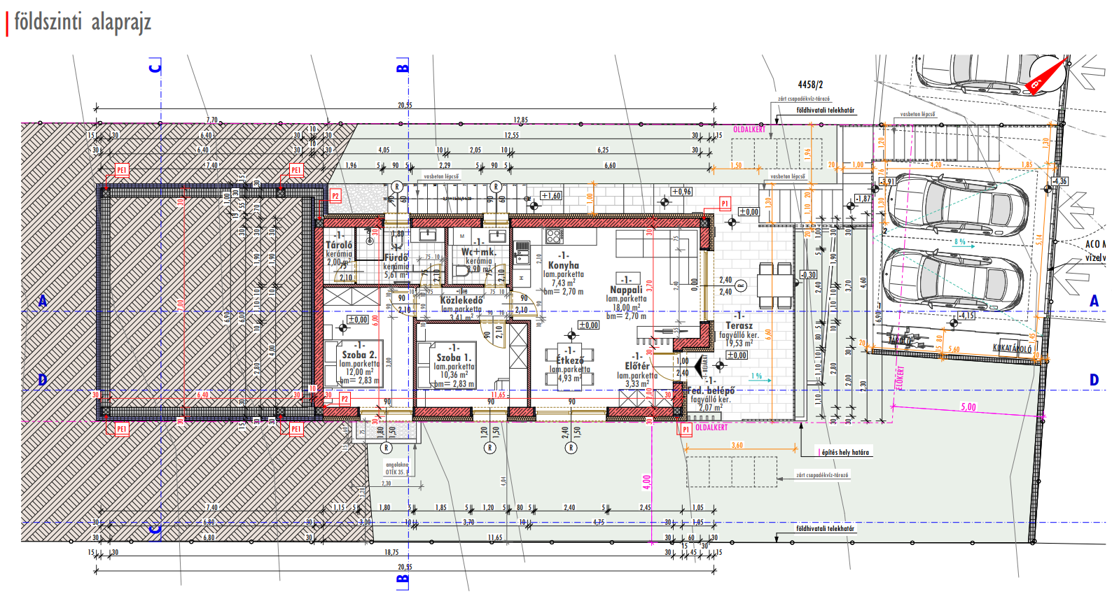 - Alapozás: beton sávalap, monolit vb. talpgerendával, modifikált bitumenes vastaglemez talajnedvesség elleni vízszigeteléssel.