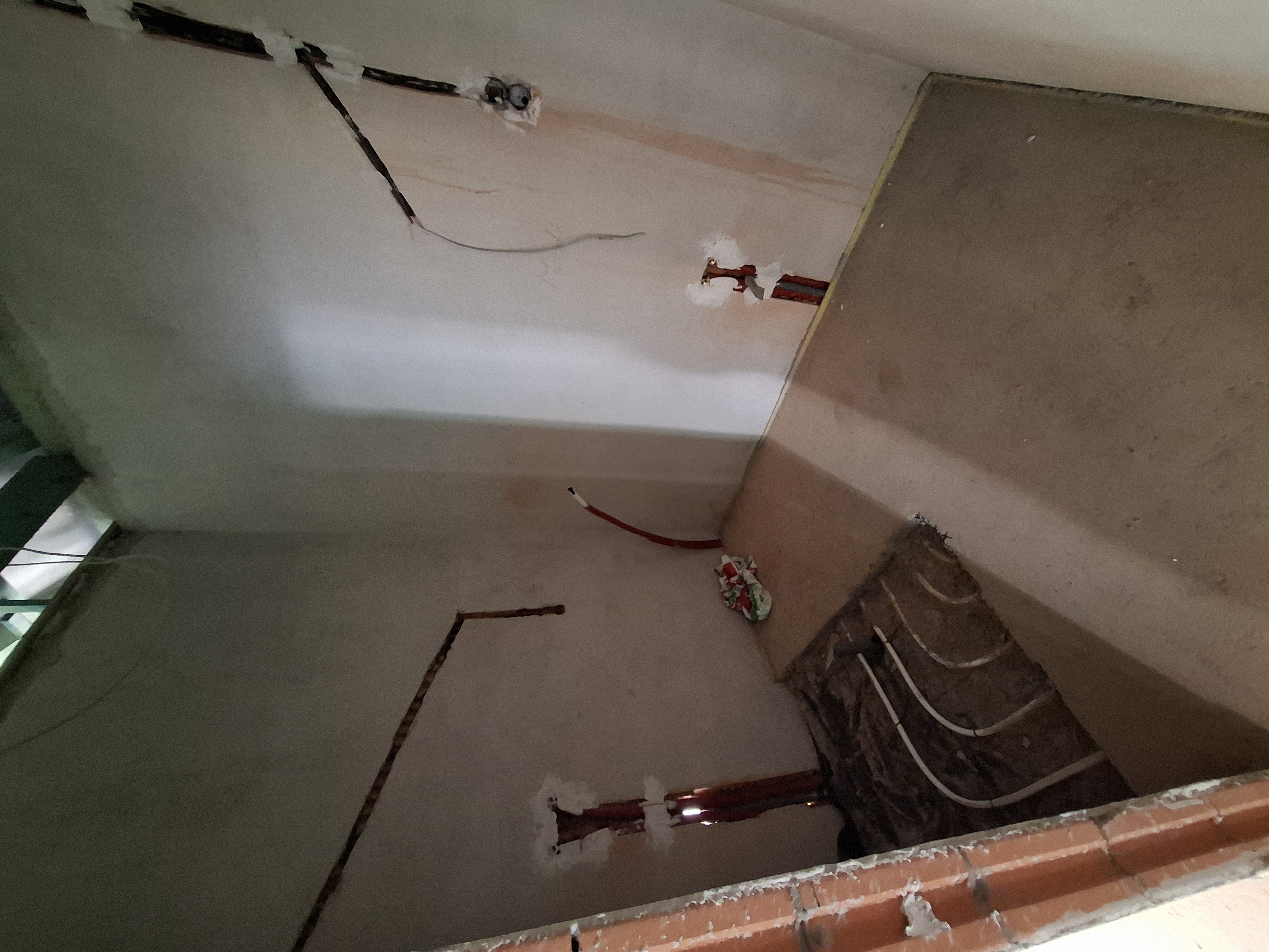 Falak festése : falak és a mennyezet glettelt, 2-szeri fehér festéssel.