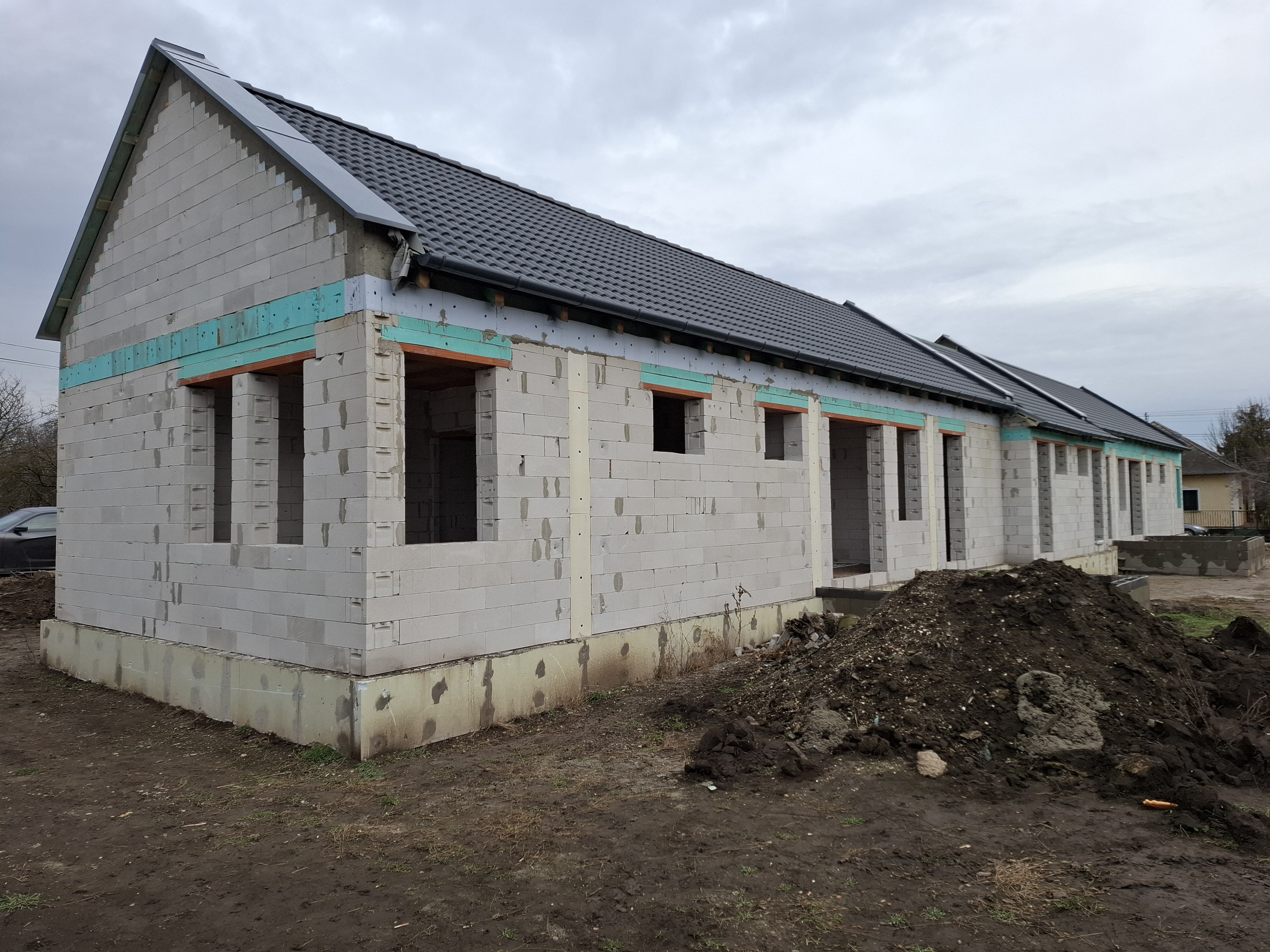 - Homlokzati szigetelés: 15cm EPS